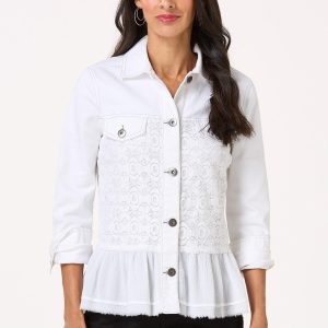 A denim jacket is always in style and one that has lace and a flirty hem – yes, please! This limited edition piece isn’t just a “jean jacket.” Its vibrant shade of white, contrasting-black stitch, lace panels and delicate-flounced hem bring a feminine and eye-catching finish that’s unique, chic and just too cute to resist.