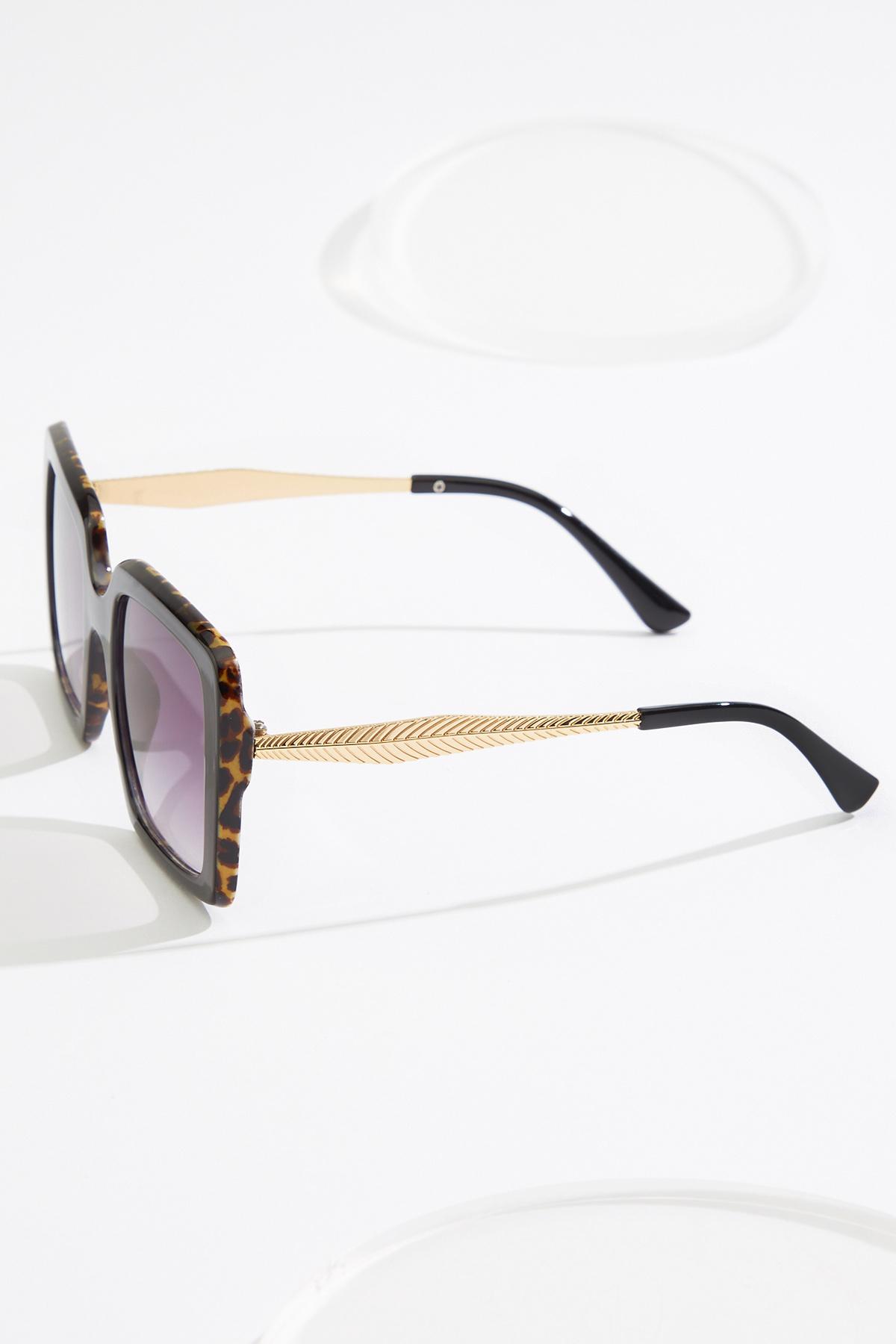 Leopard Trim Square Sunglasses