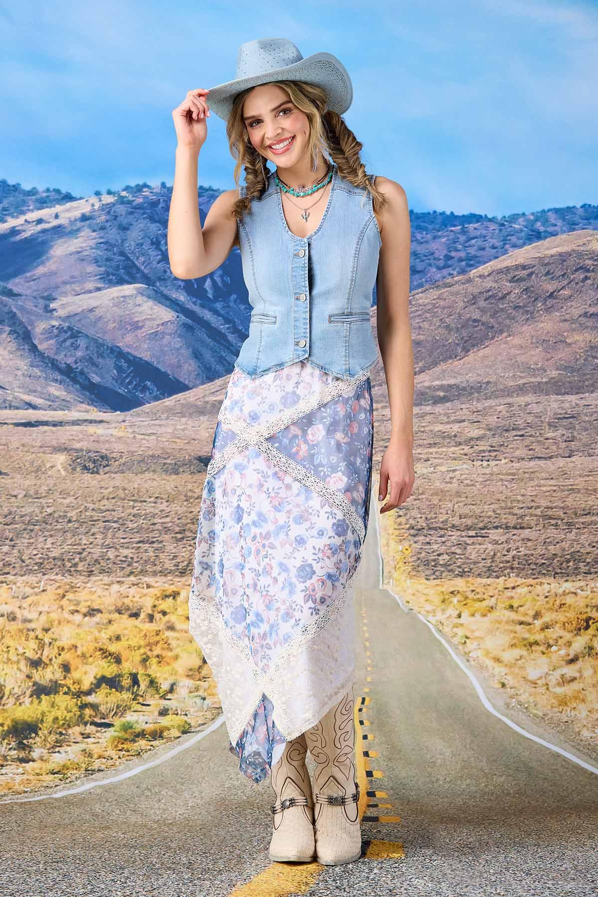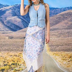 Denim vests are such a hot trend for a stylish summer. Light-wash denim fabrication features a v-neckline, a classic sleeveless style, a button-down front and faux-front pockets along with a cropped hem for a classic denim vest that’s perfect for all your summer concerts and events.