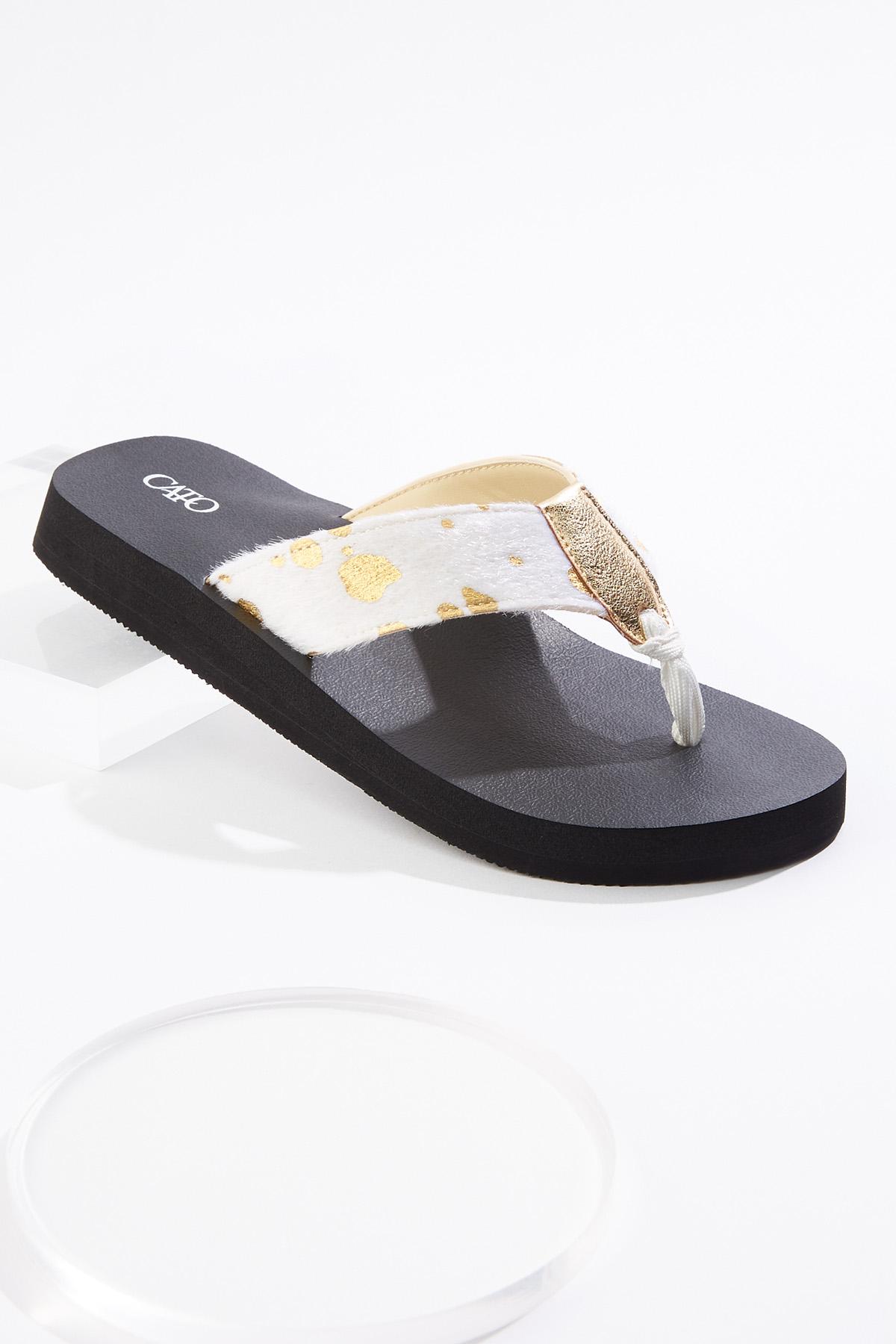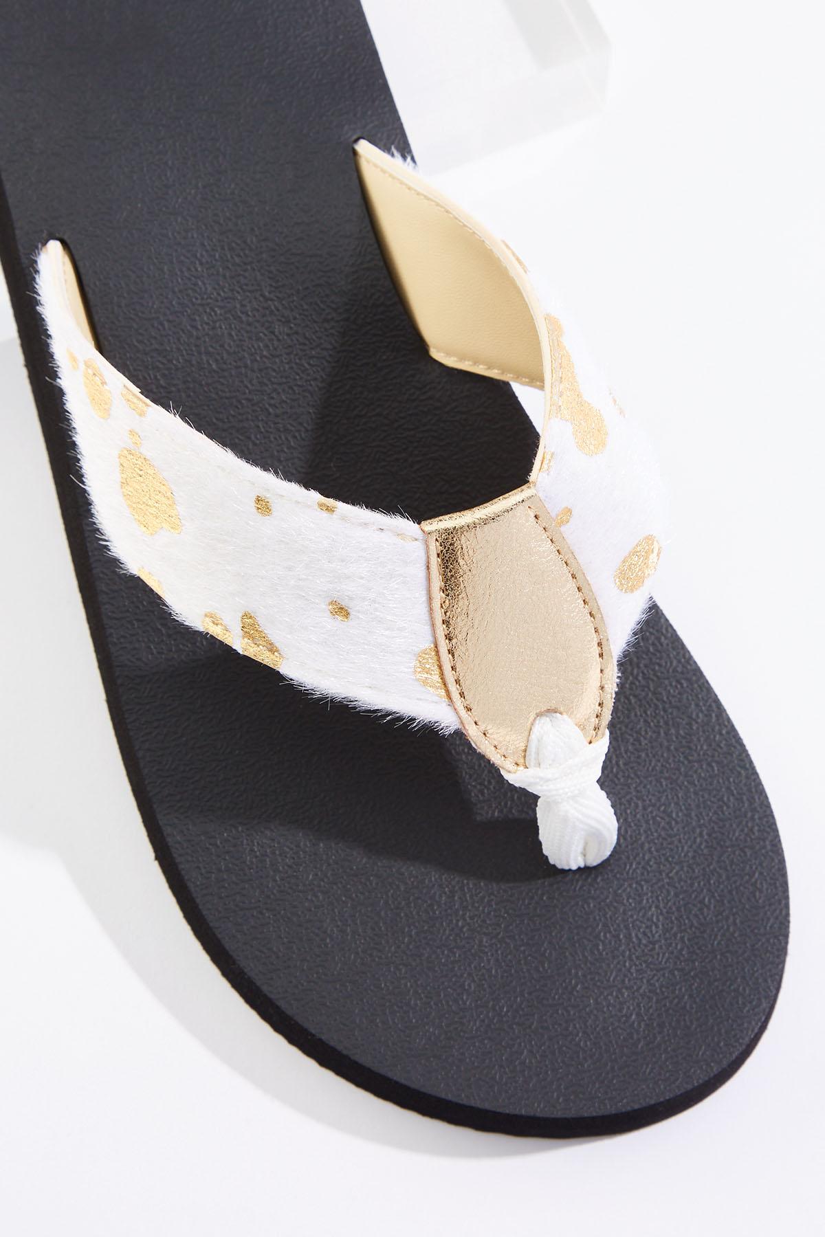 Metallic Faux Fur Flip Flops