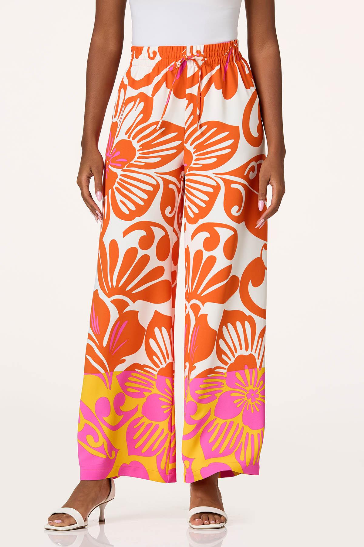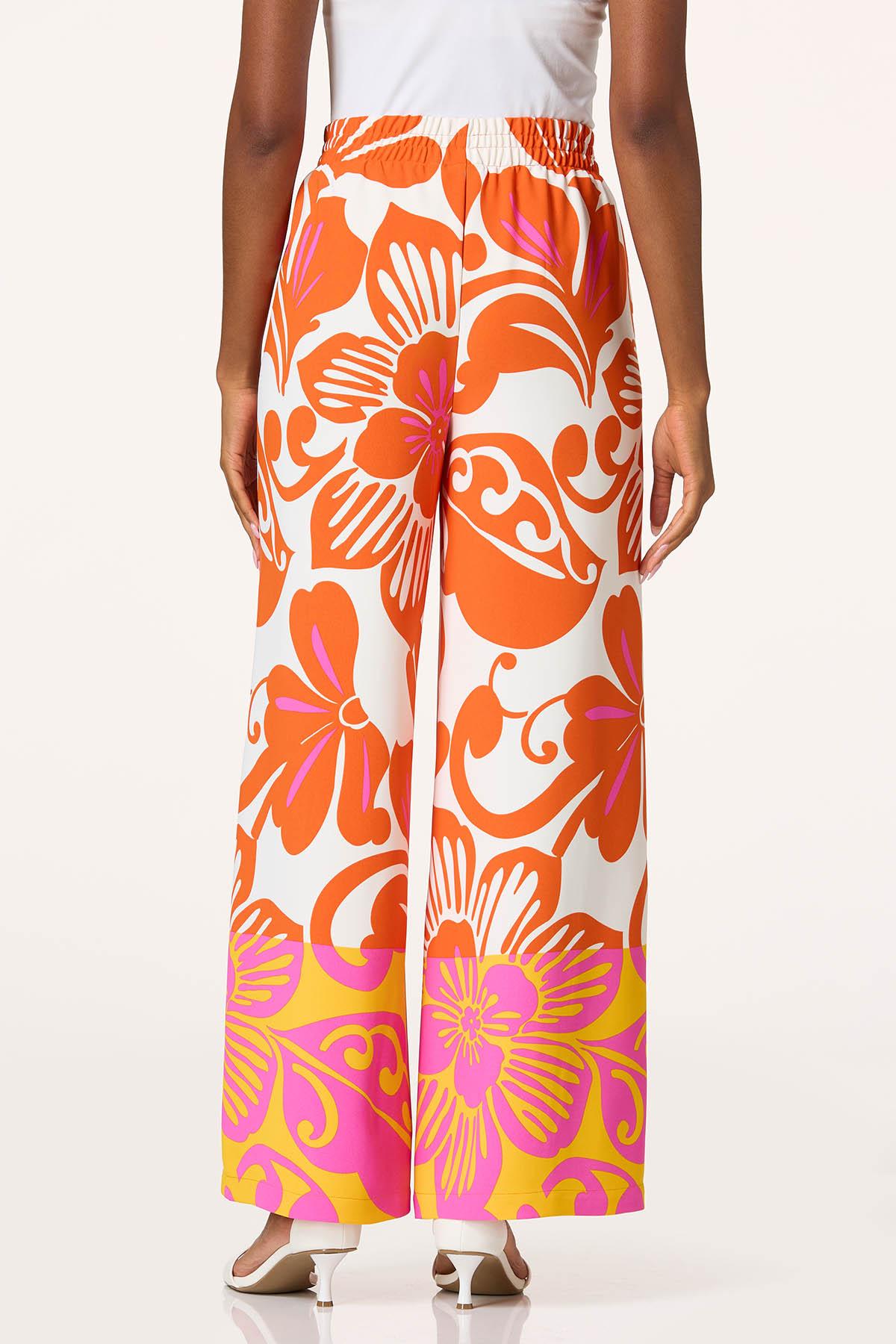 Celebrate the sun with this lightweight, wide leg style, featuring an elastic-tie waist, breezy silhouette and a bold-floral print in a color palette that’s ready for sunshine and fun times.