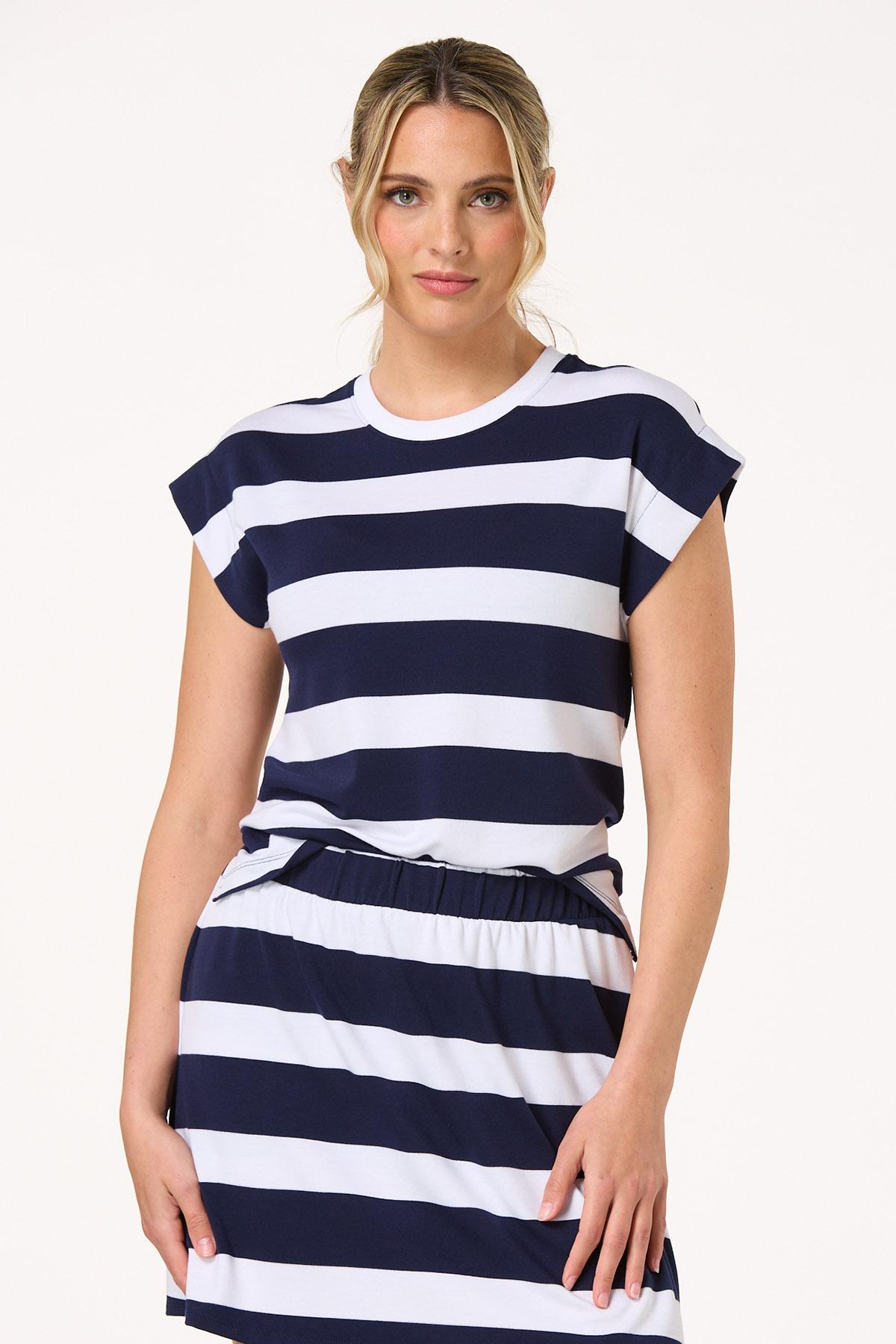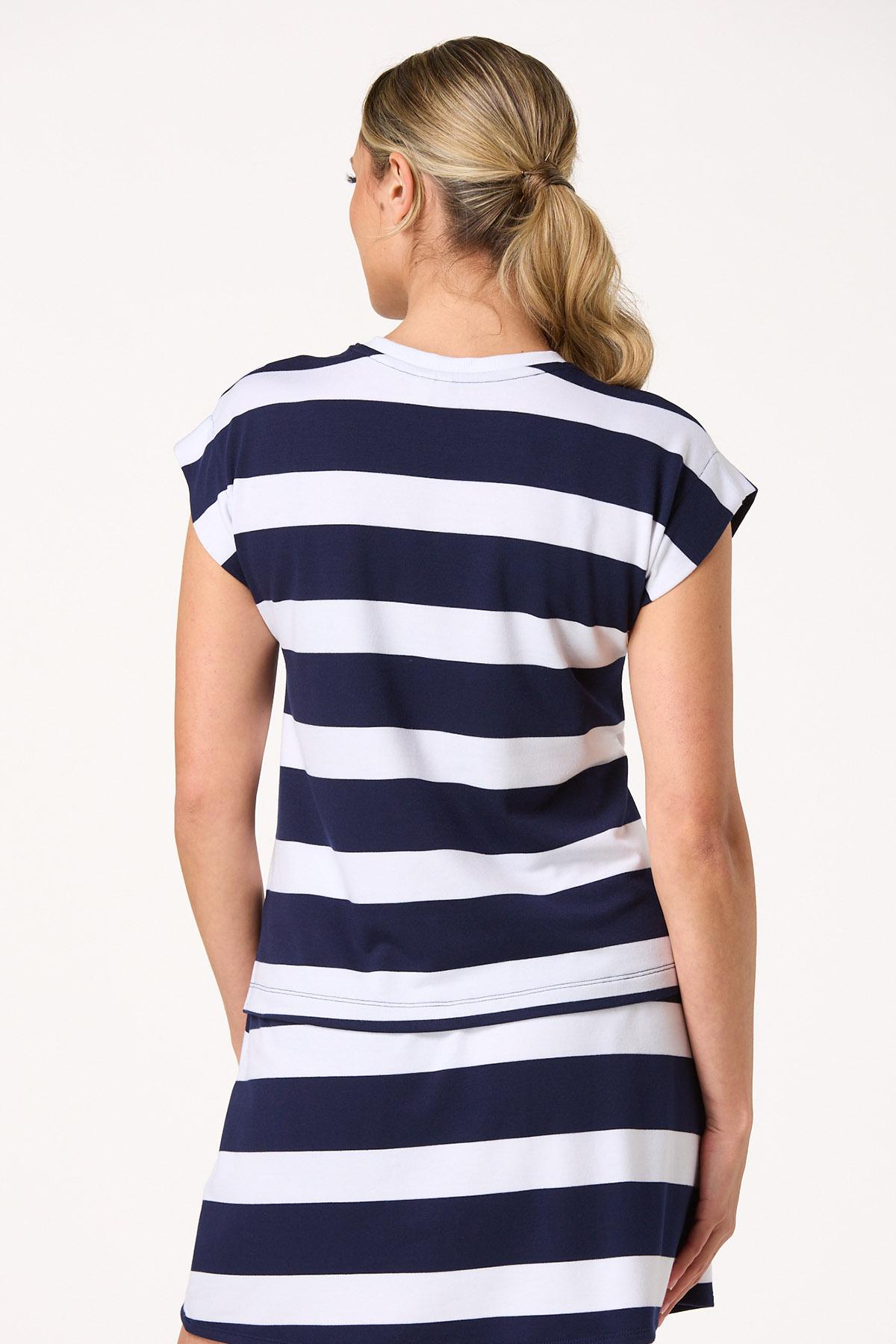 How cute and comfy you’ll be when you show up wearing this pullover style, featuring a scoop neckline, wide-stripe print and a nautical color combo – perfect for those days in the sun. Pair with our matching skort for a look that brings a sporty-chic feel you can count on for a look-good, feel-good finish.