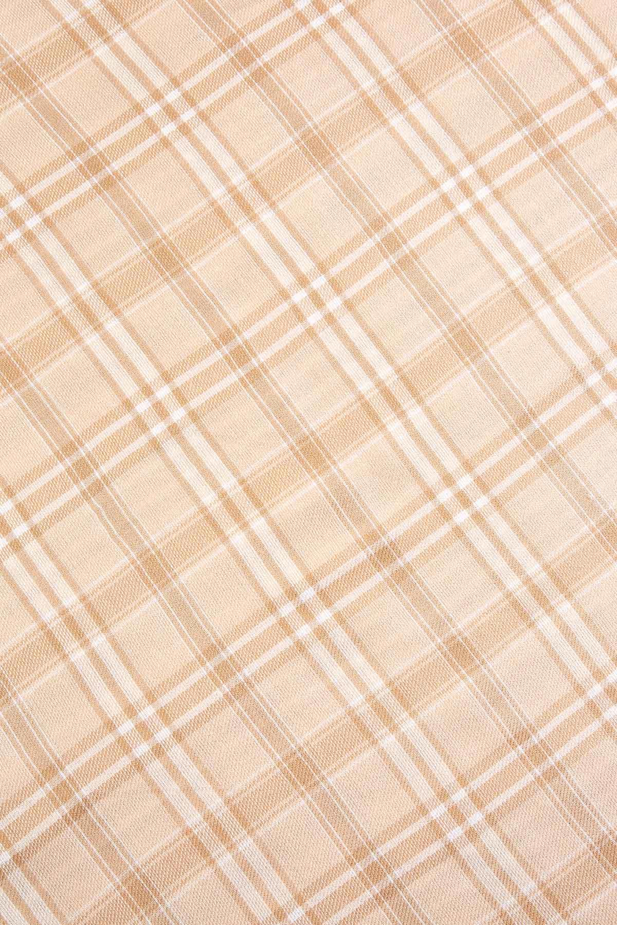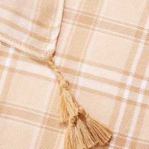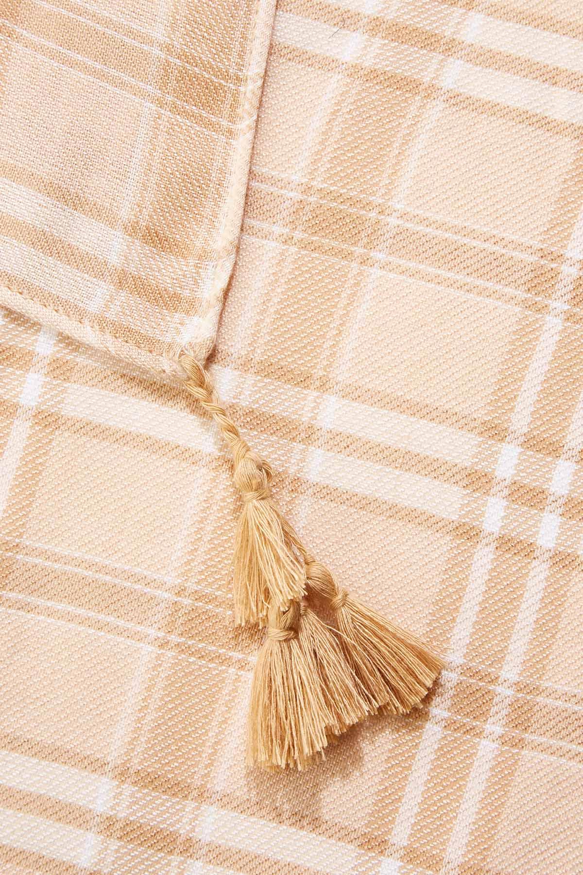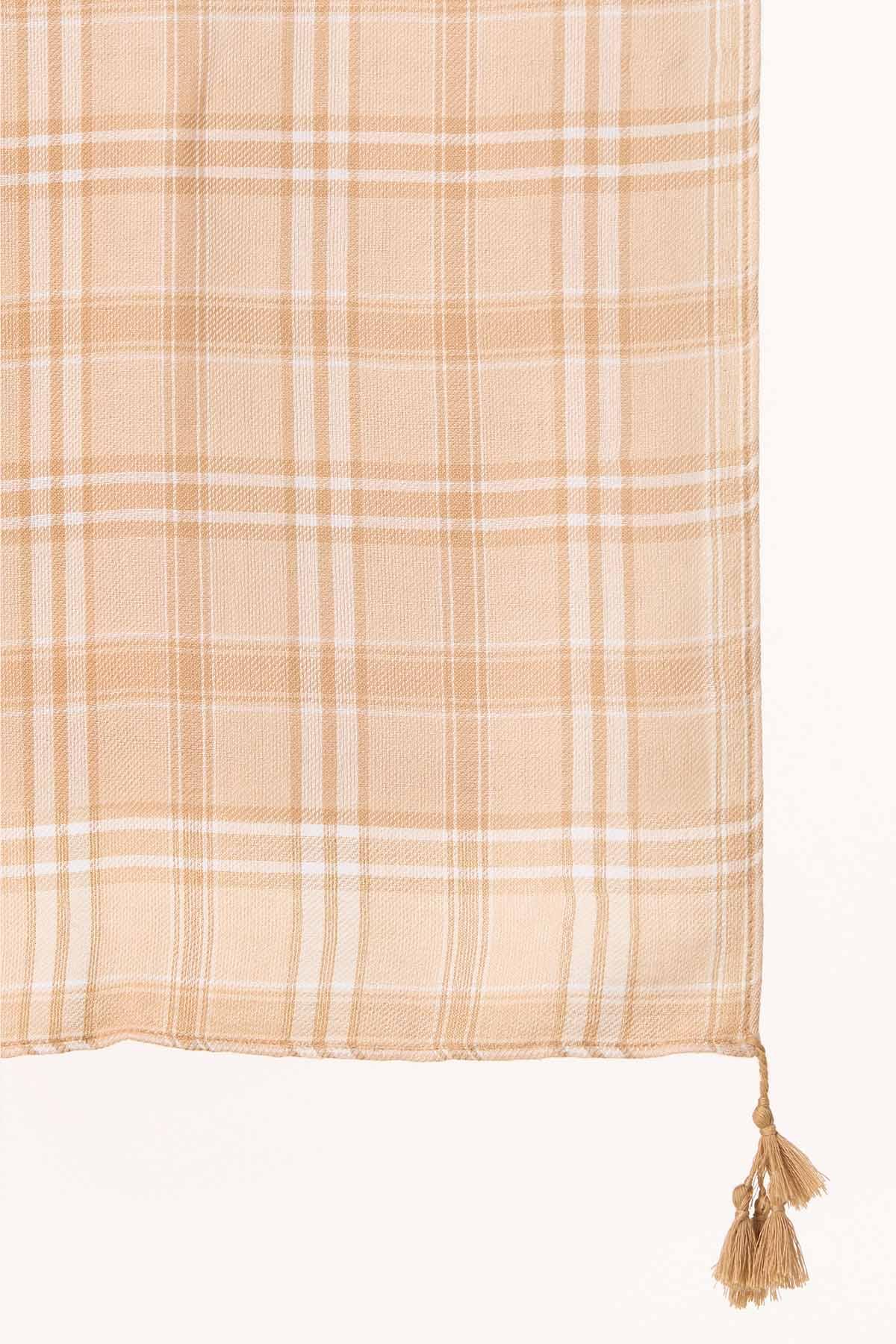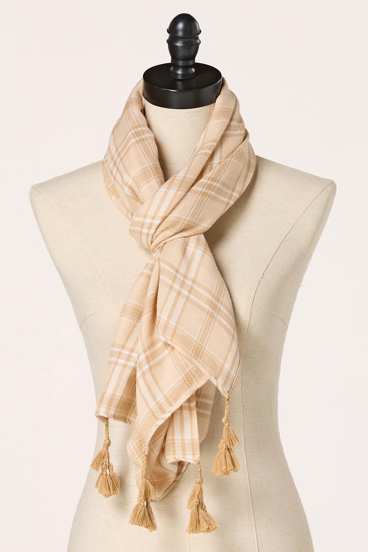 Neutral Plaid Tassel Trim Scarf