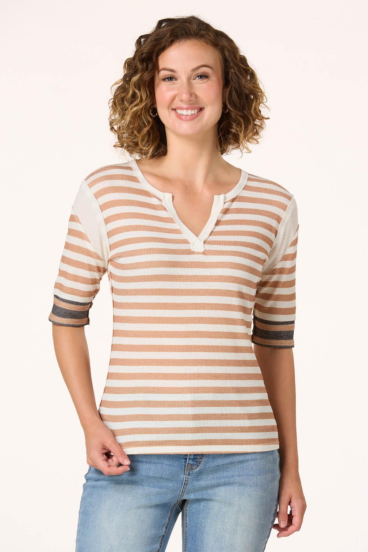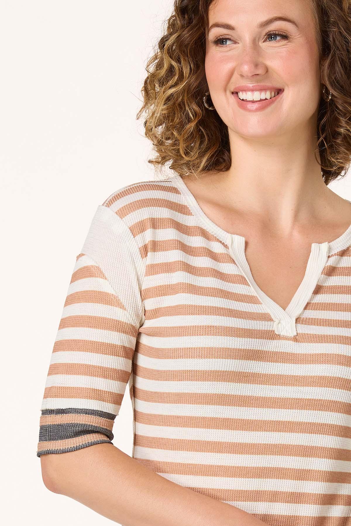 Neutral Striped Baseball Top