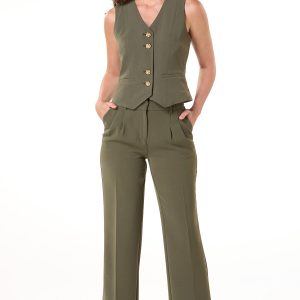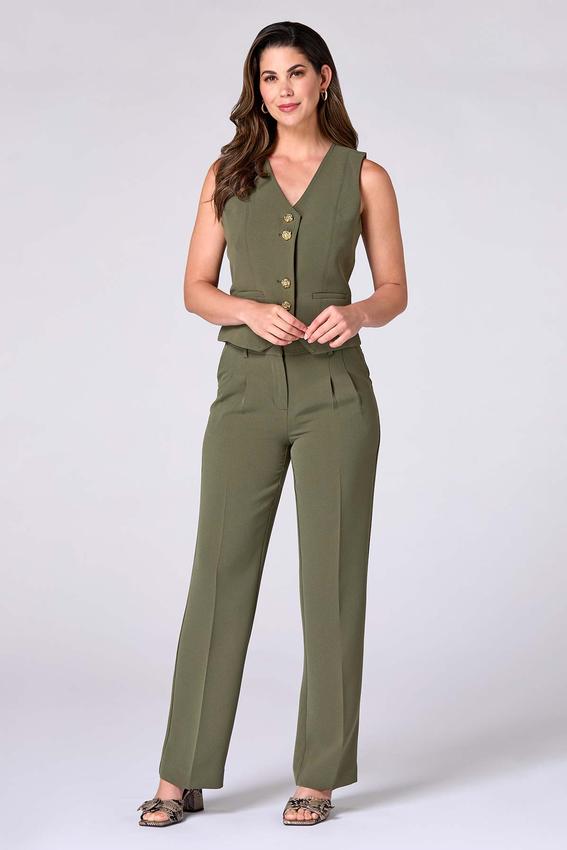 Sophisticated style with a twist – these dressy pleated pants are crafted from textured crepe in a rich olive green hue. They’re a true standout on their own, but paired with our matching crepe button-down vest? Next-level chic.