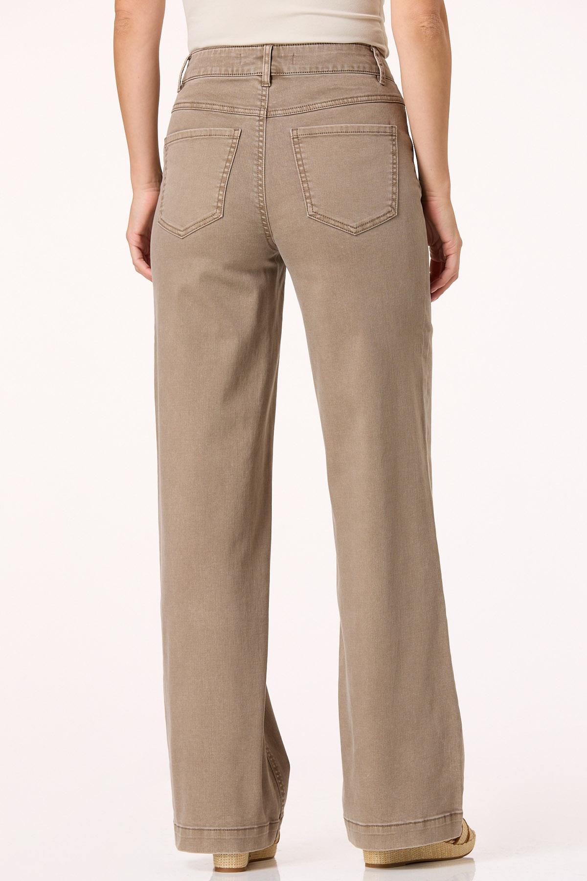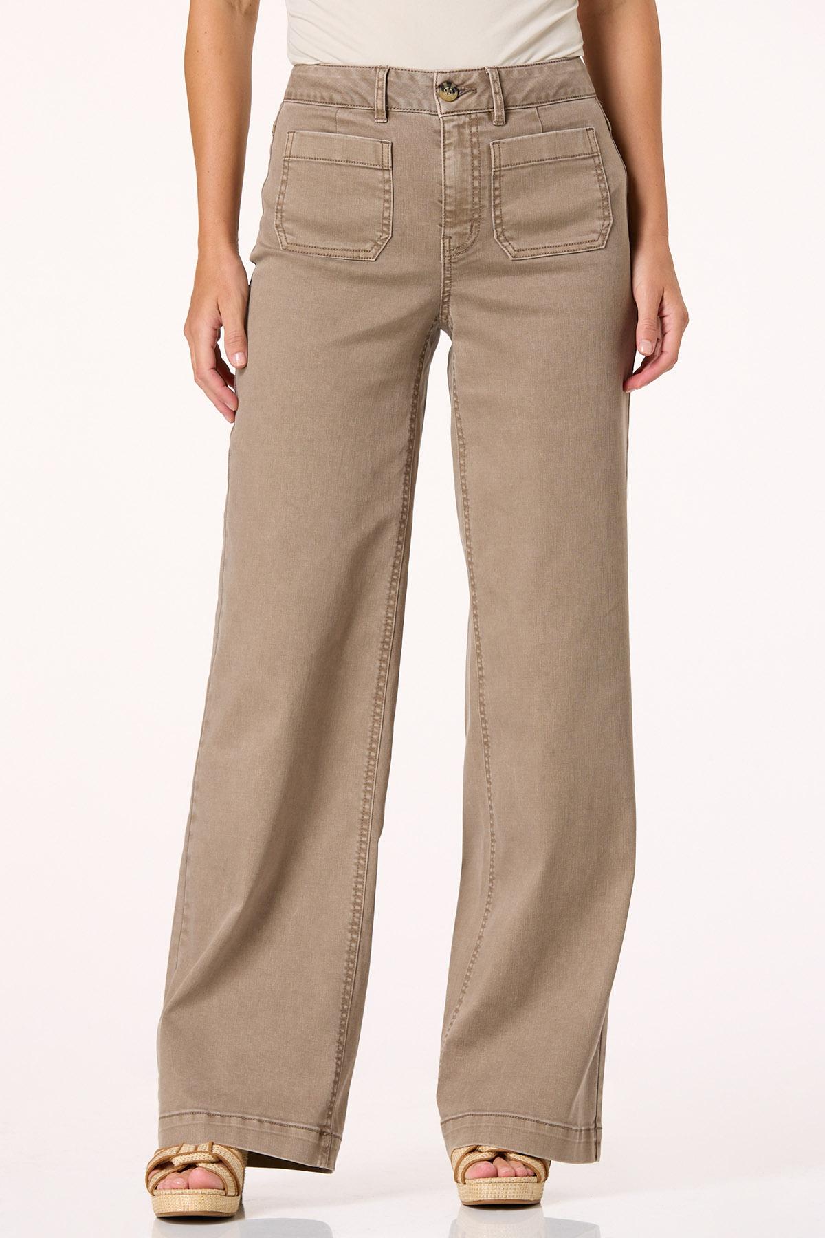 These wide leg jeans come in a washed neutral brown that goes with everything. Designed with a flattering high rise and statement patch front pockets for a touch of vintage flair. Your new everyday essential, elevated.