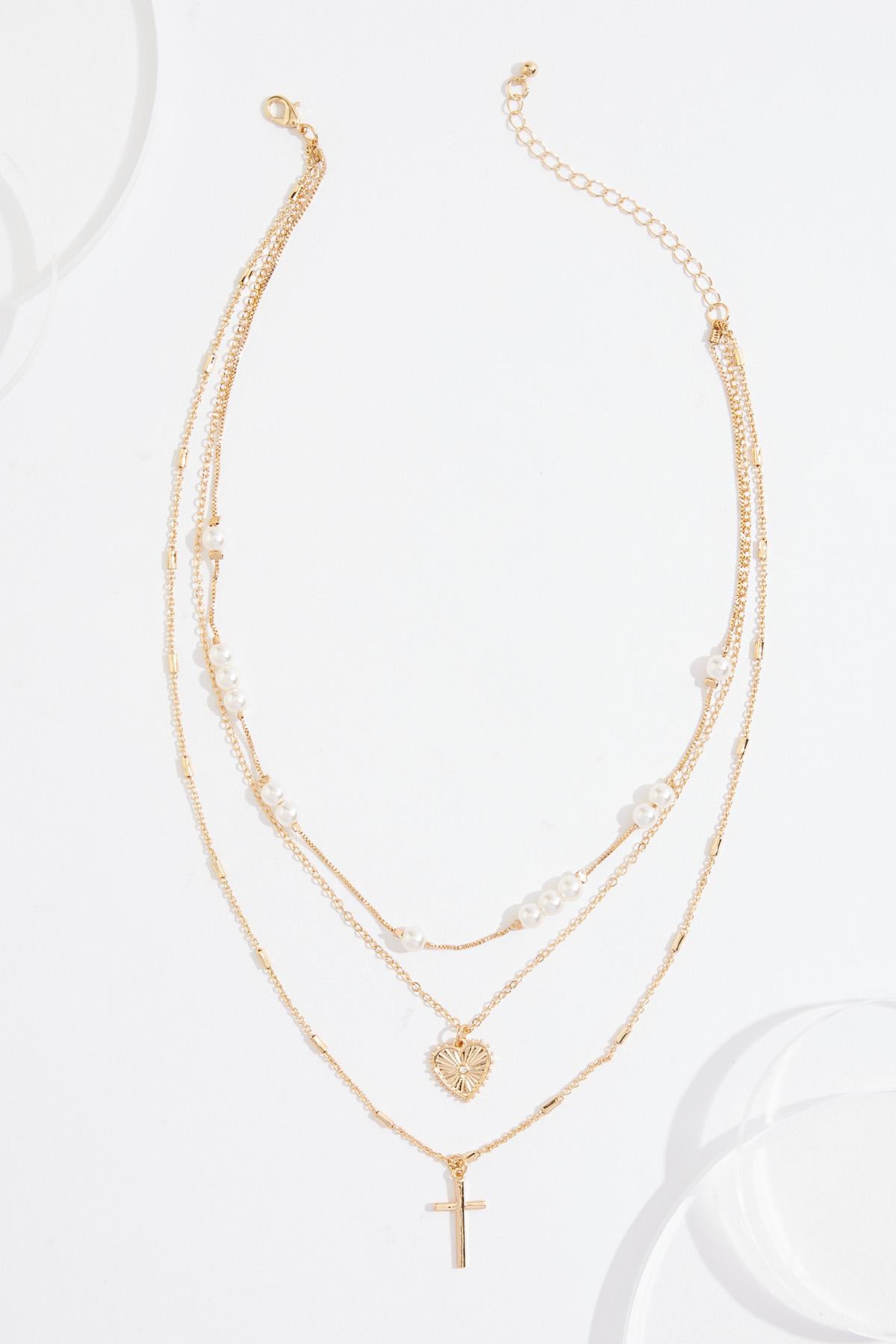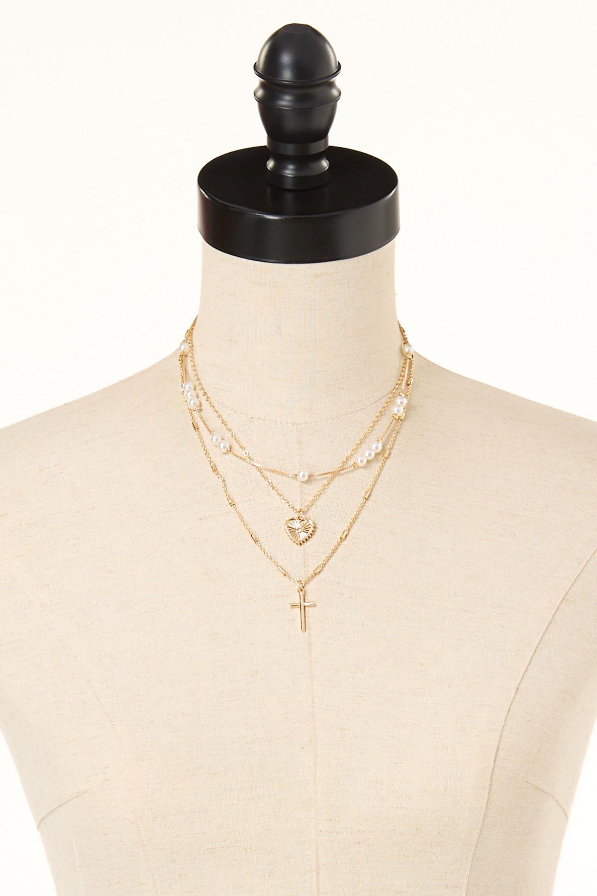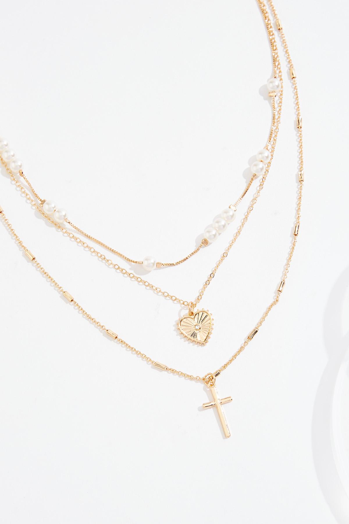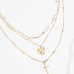 Pearl Heart Cross Layered Necklace