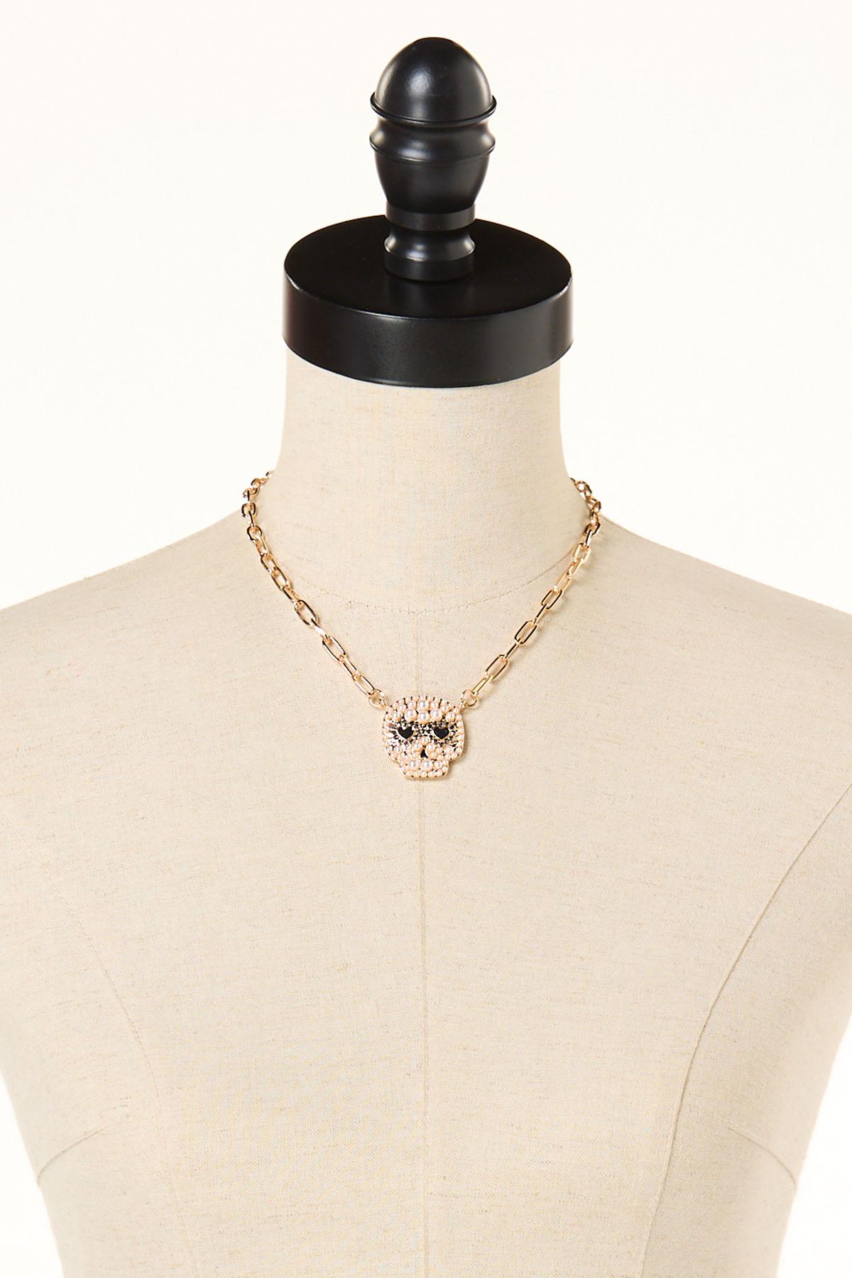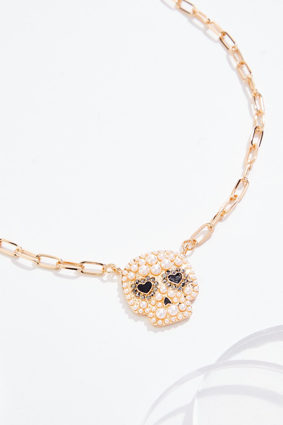 Pearl Skull Pendant Chain Necklace