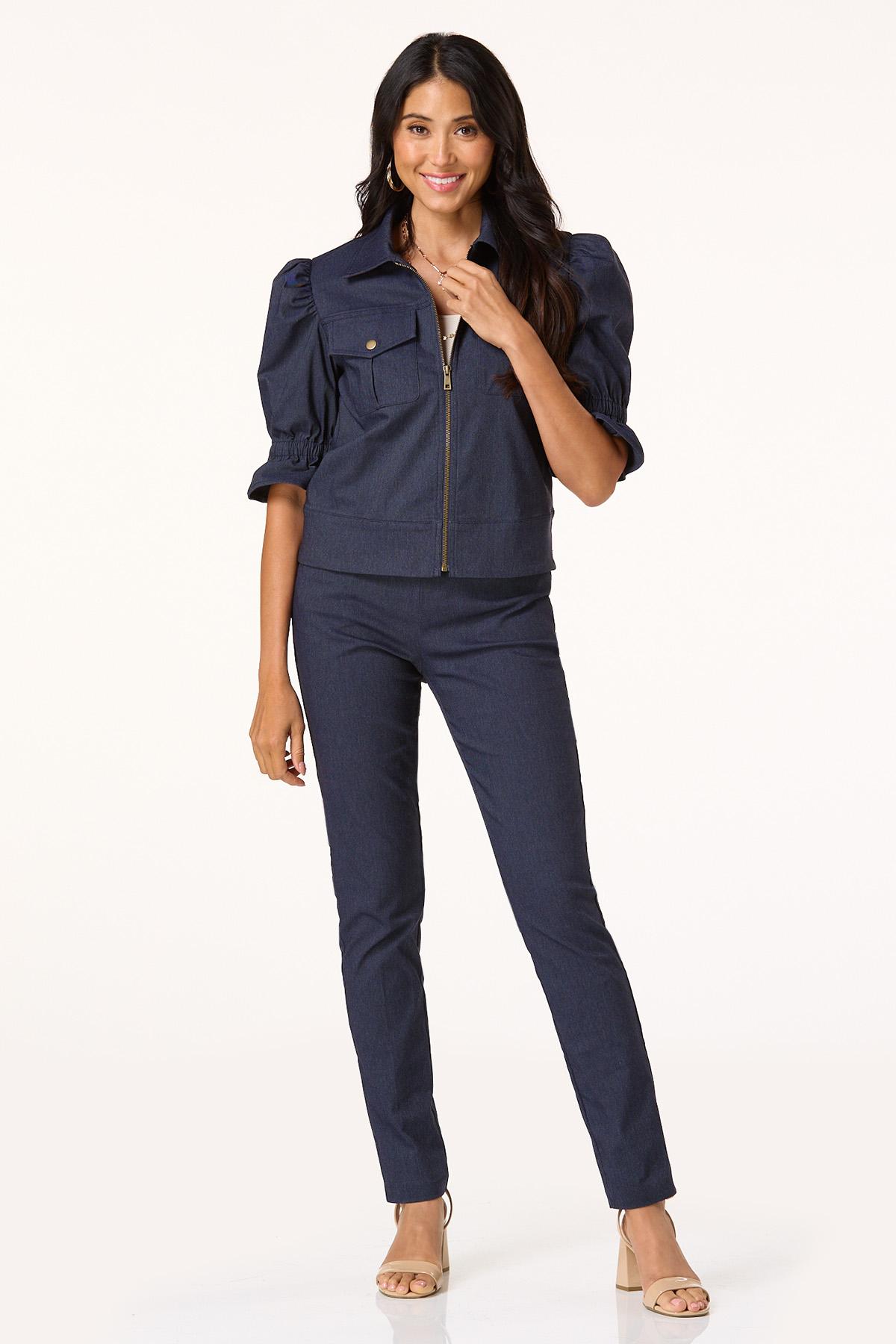 Petite Dressy Denim Slim Leg Pants