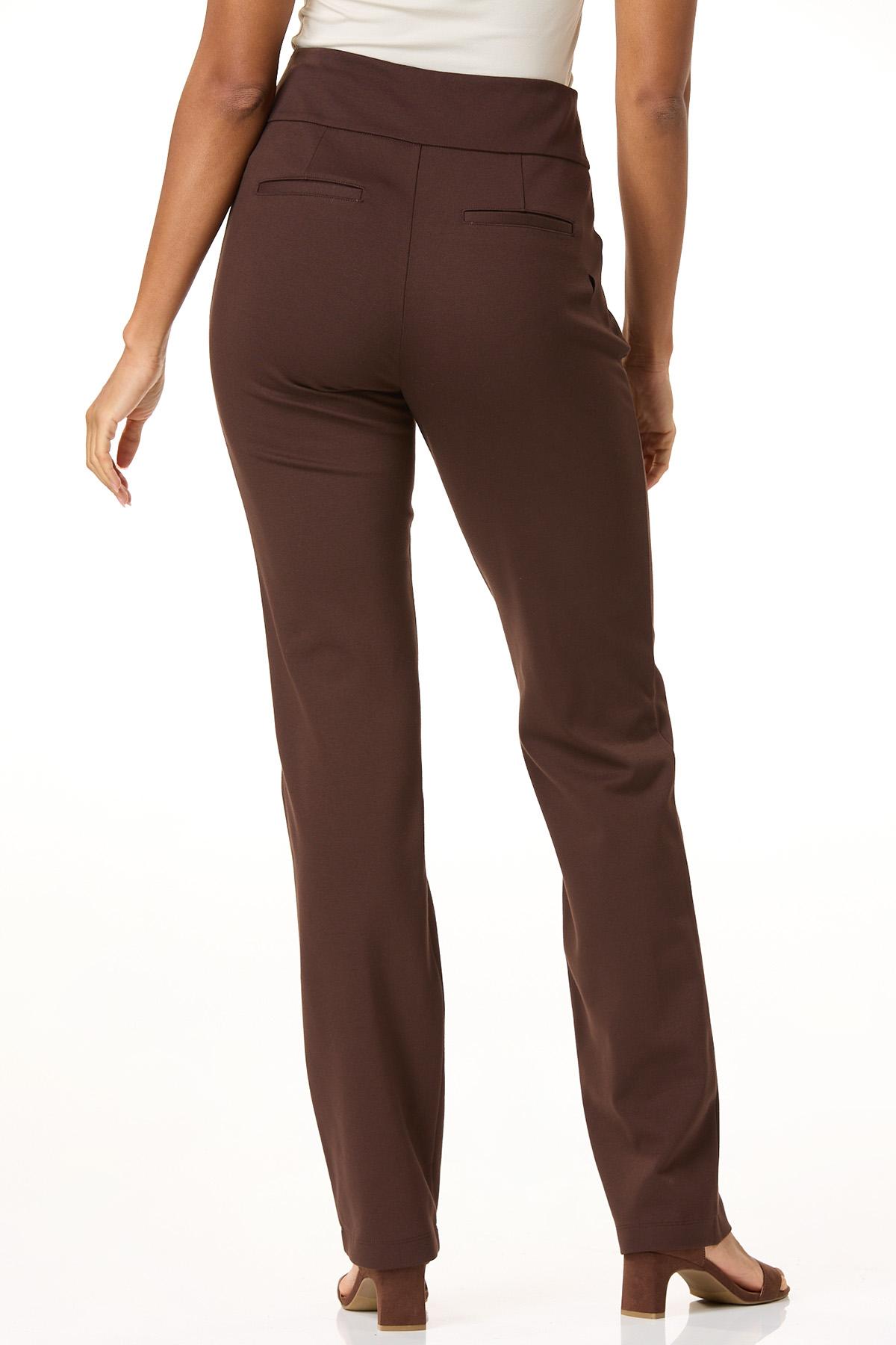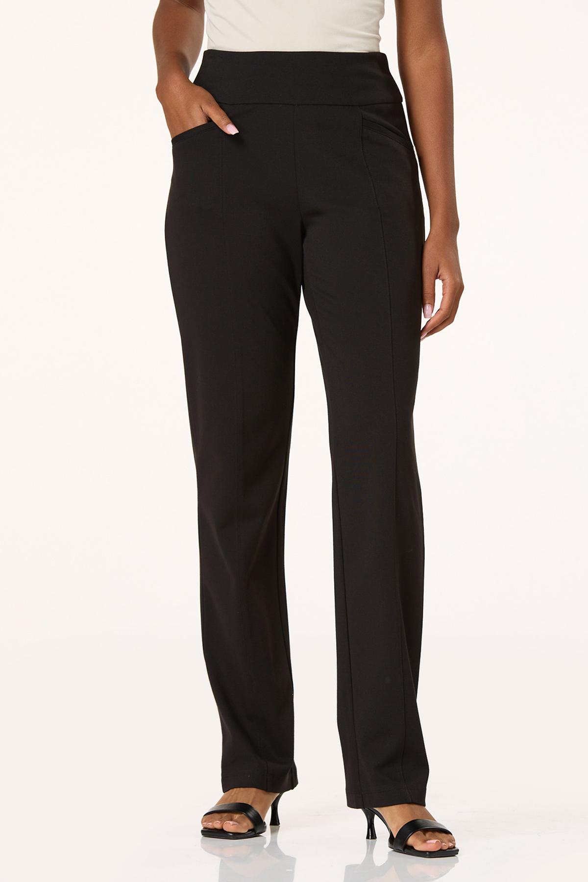 Sleek and secretly comfy, these high-rise ponte pants mean business. A pull-on, wide waistband smooths and flatters, while front center seams and slant pockets add a tailored touch. With a straight-leg silhouette that moves effortlessly from desk to dinner, they’re your new everyday upgrade.