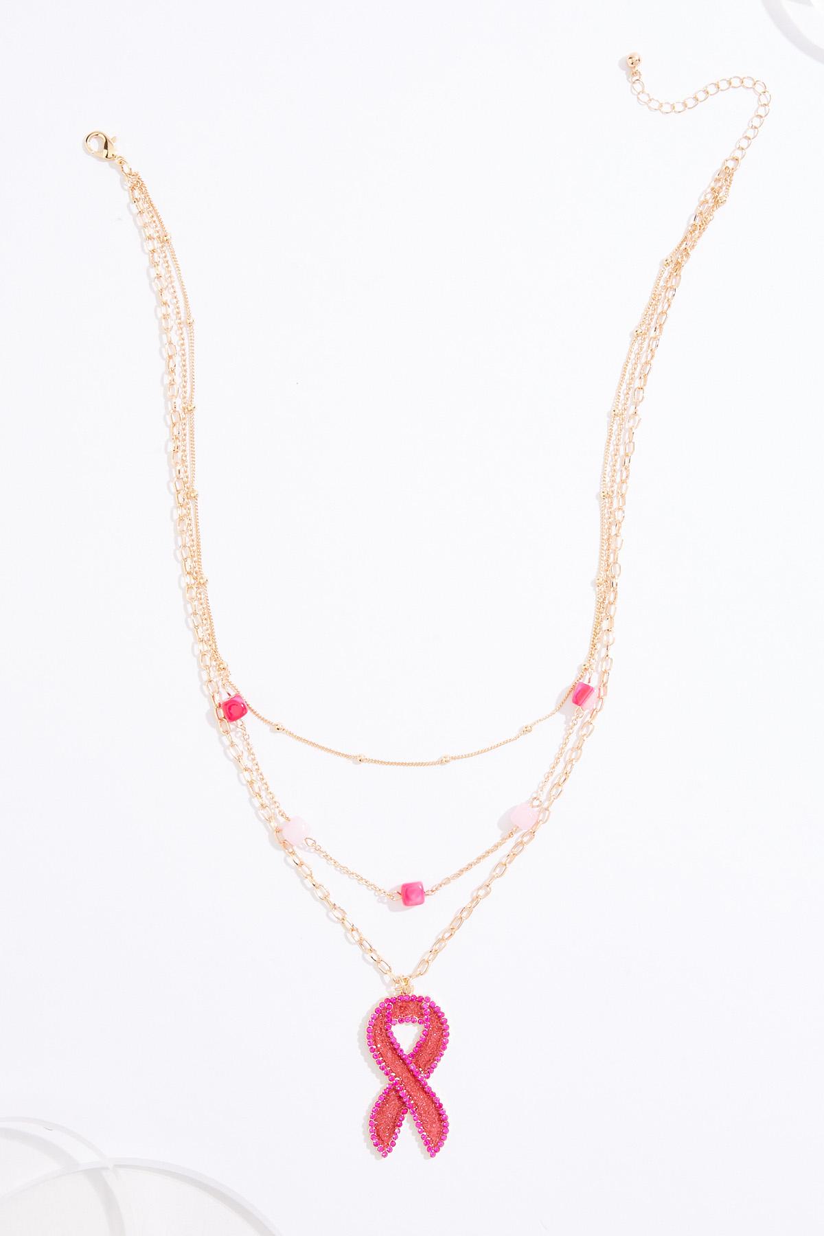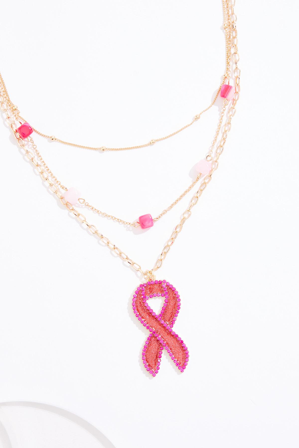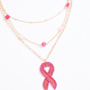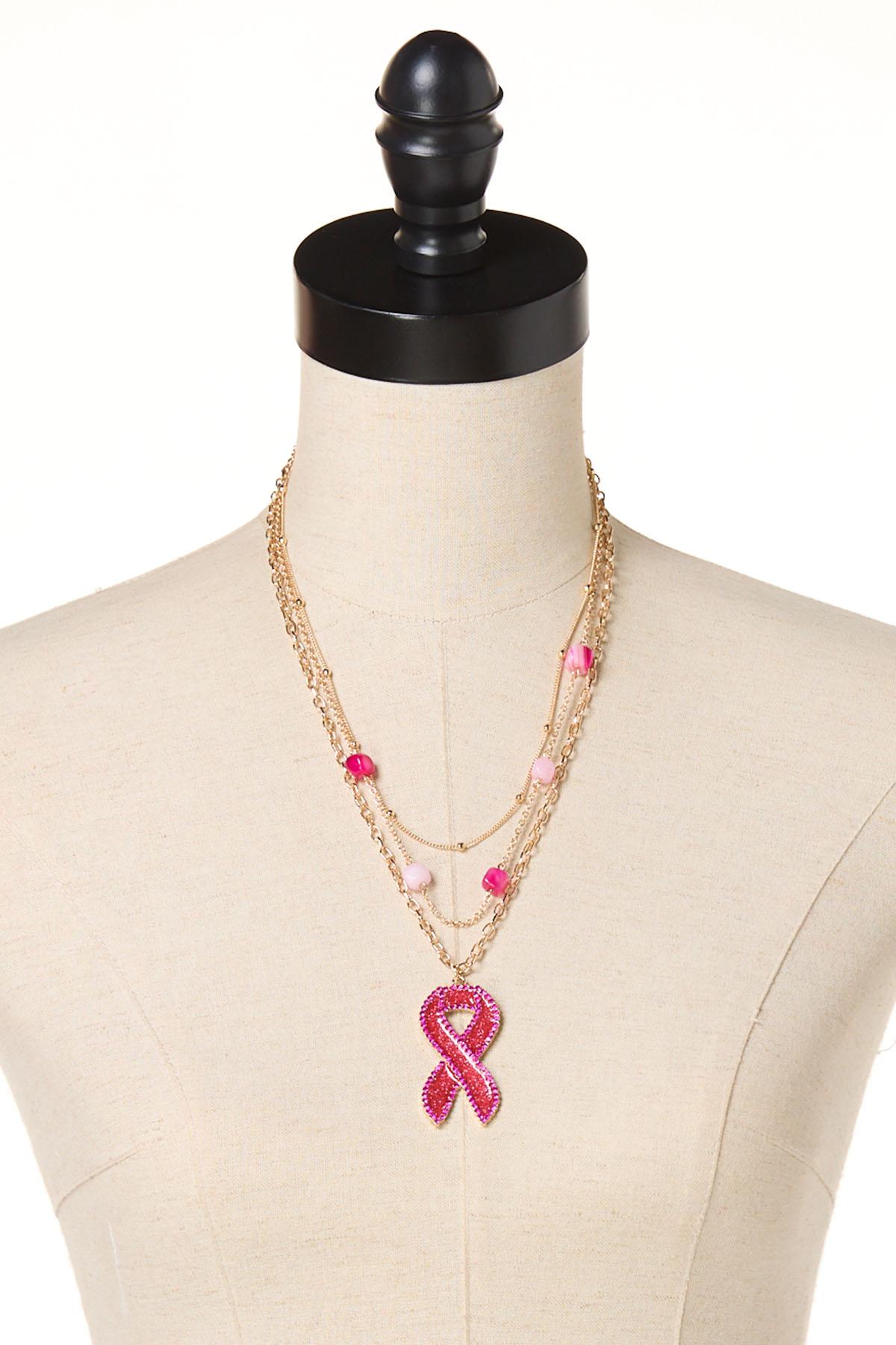 Pink Beaded Ribbon Pendant Necklace