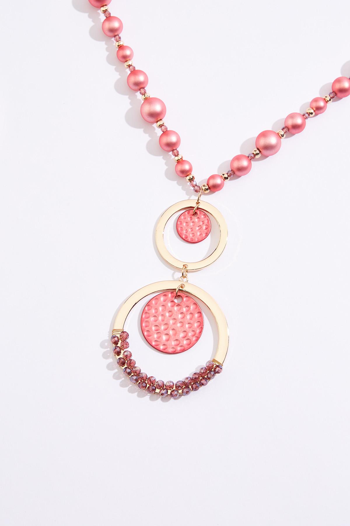 Pink Beaded Ring Necklace Set