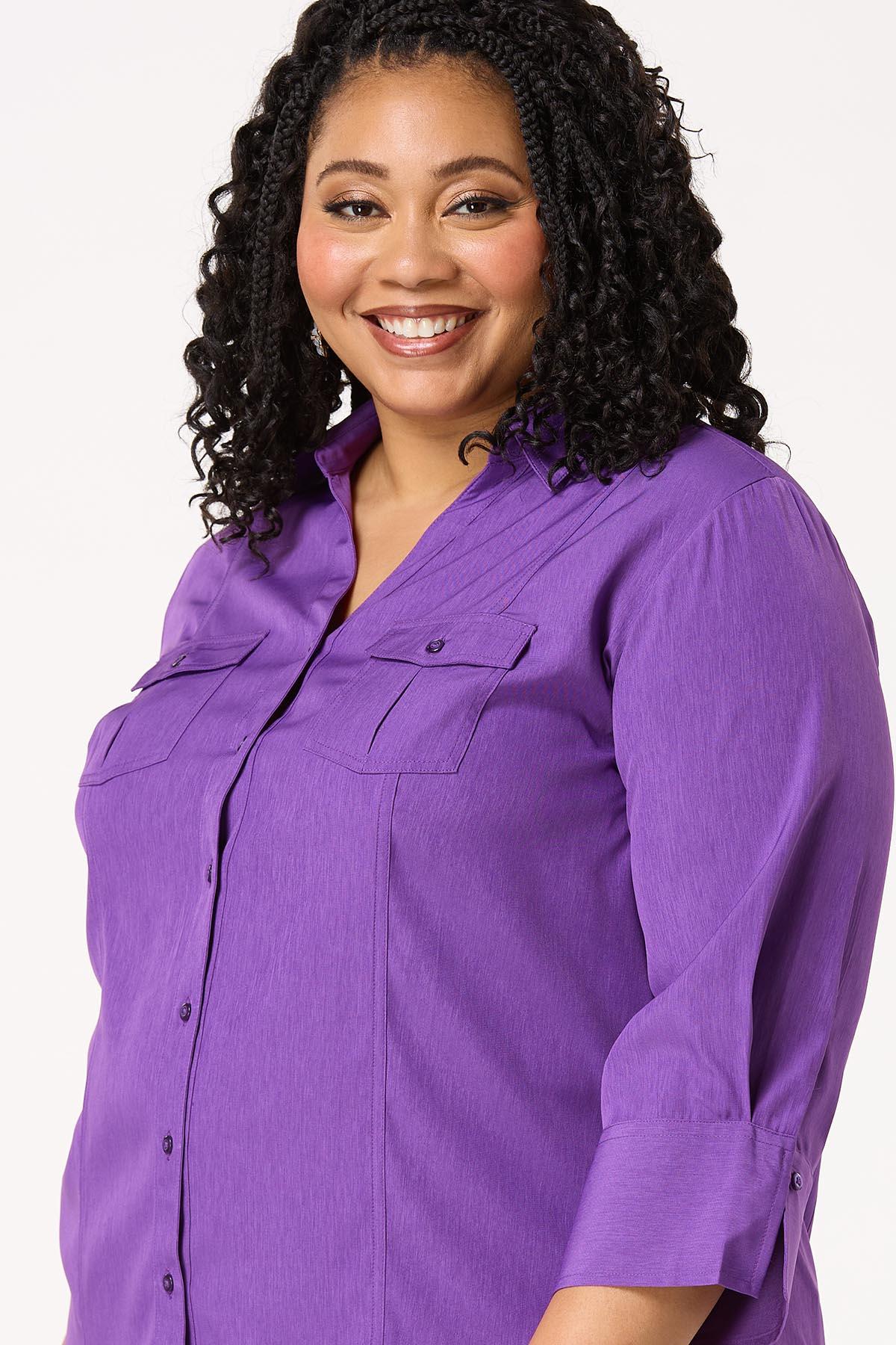 A wardrobe staple – this button down shirt keeps you crisp and fresh all day with its tailored design, versatile solid hue and collared neckline.
