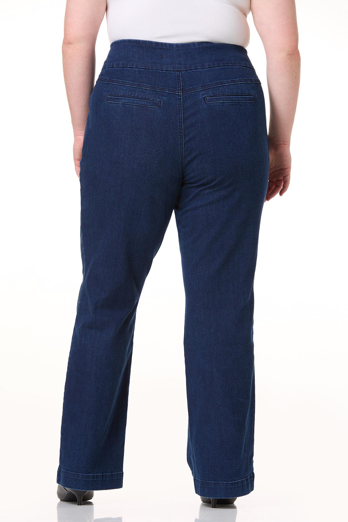 Designed for comfort without compromising style, these dark wash trouser-style jeans feature a pull-on waist and soft stretch fabric that moves with you. Pair with a tucked-in blouse and loafers for a put-together work look, or dress them down with a simple tee and sneakers for the weekend.