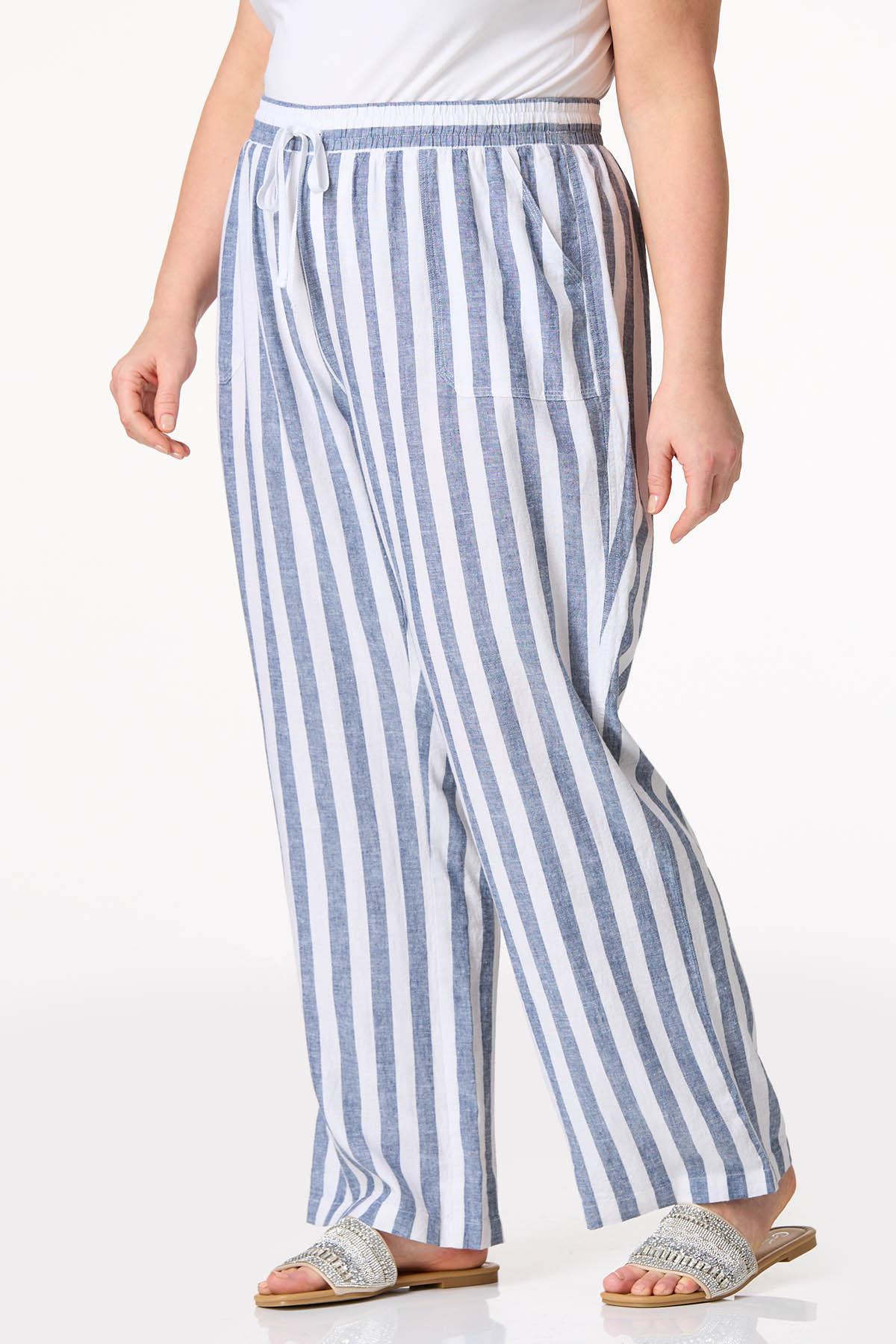 Seems like soaking up the sunshine may be the perfect thing to do with these lightweight pants, featuring a drawstring waist, classic-stripe print, nautical color palette and an easy-breezy fit in a cool, linen blend.