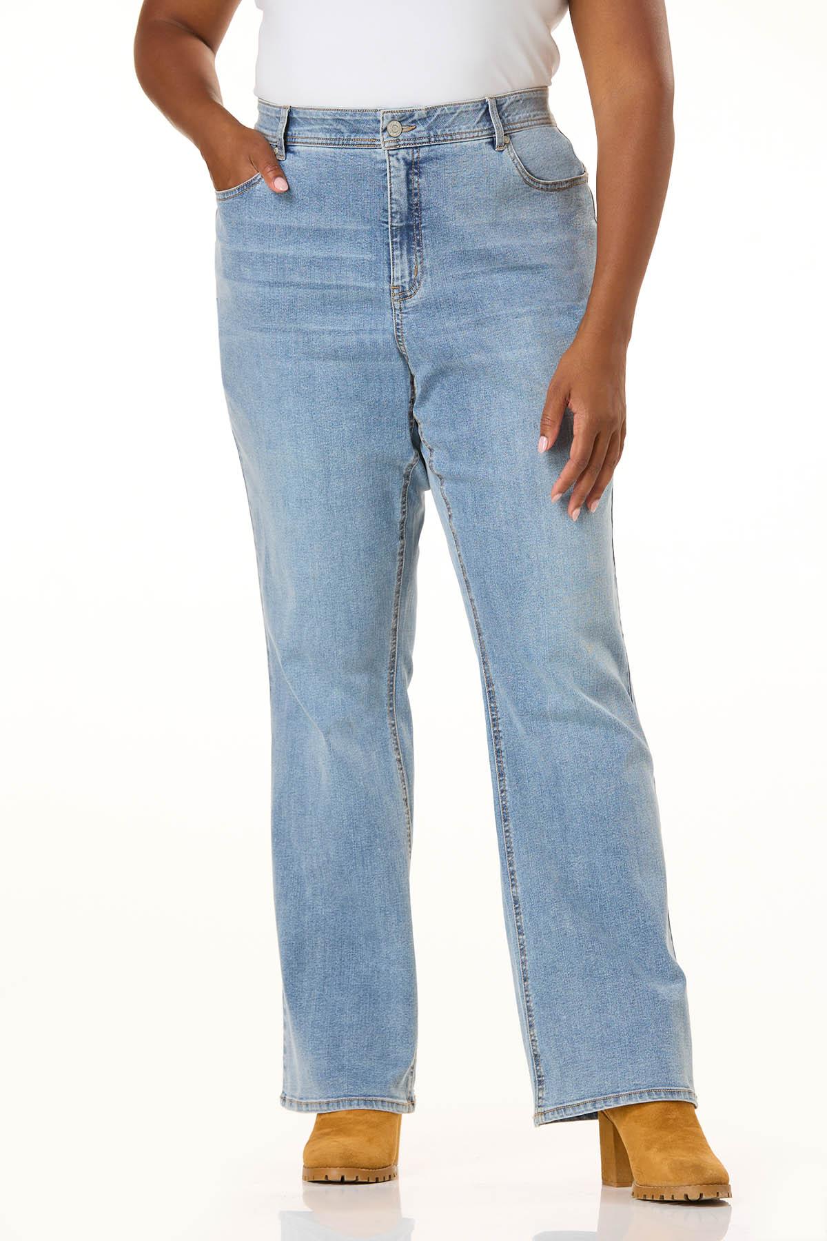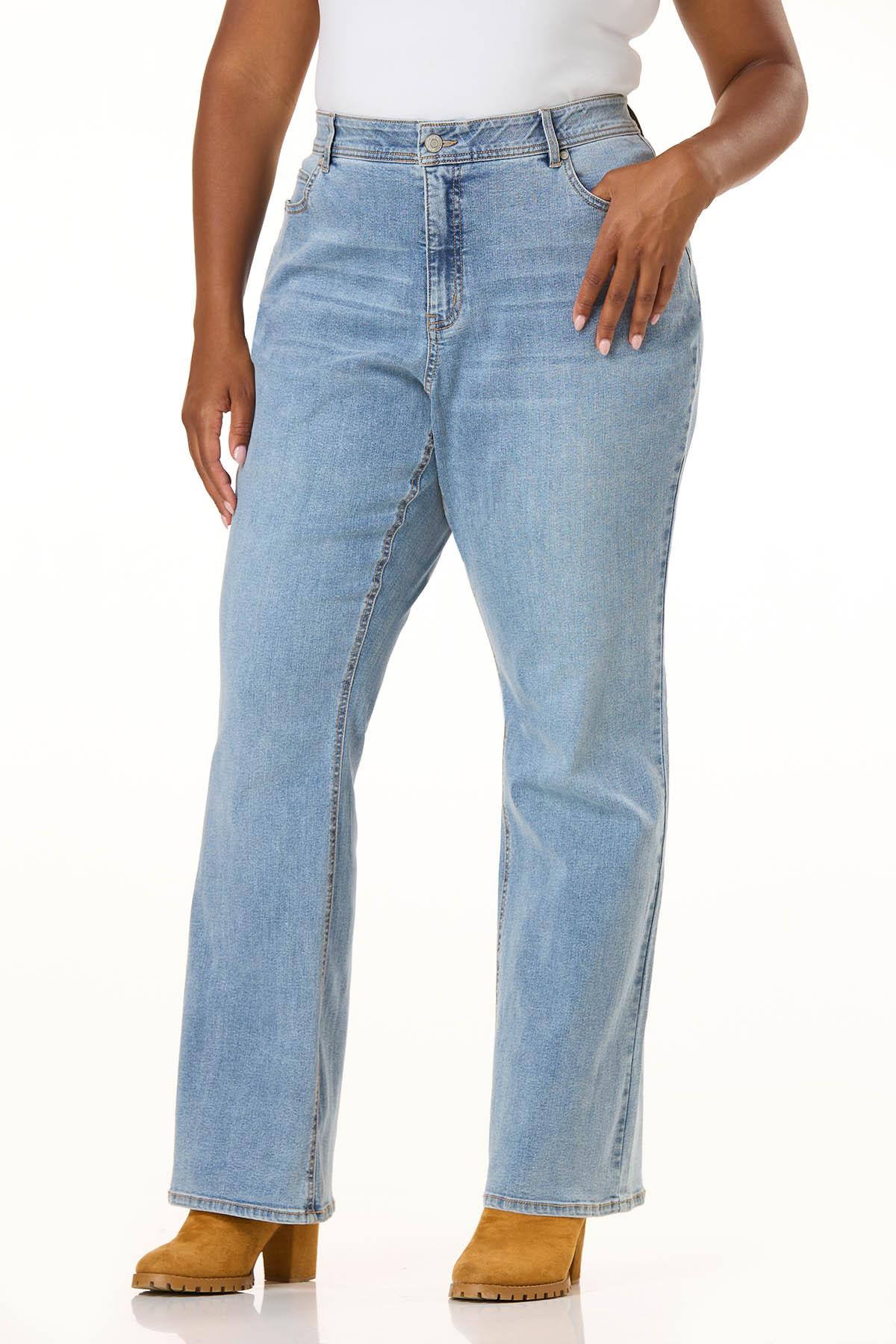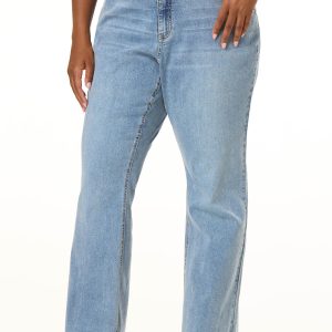 Meet your new go-to jeans: a light wash bootcut silhouette designed with a flattering curvy fit and stylish double button closure. Ultra-versatile and endlessly wearable, they’re destined for the favorites section of your closet.