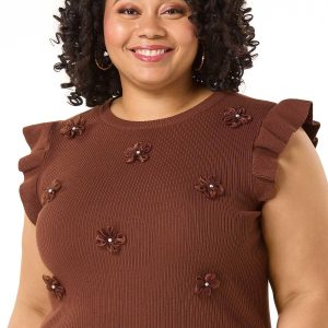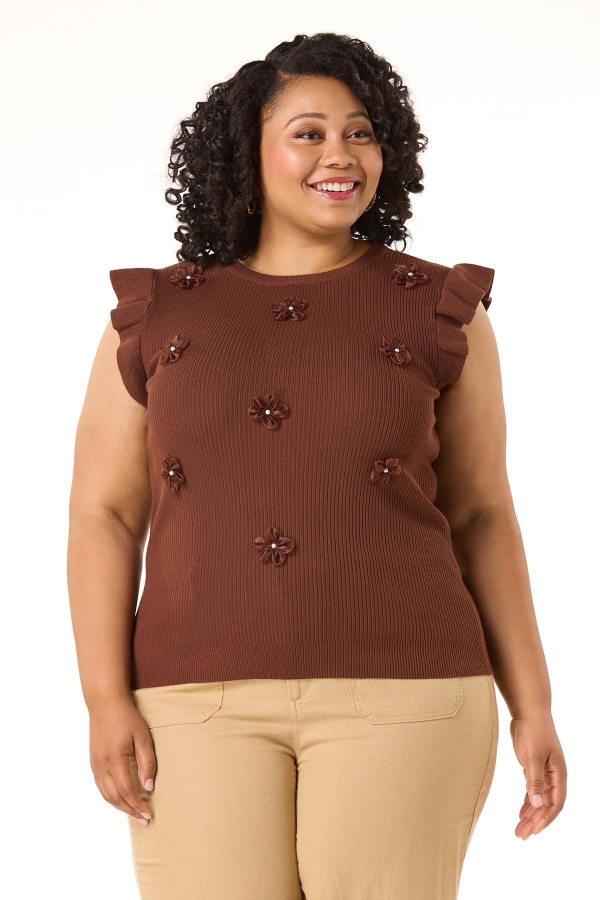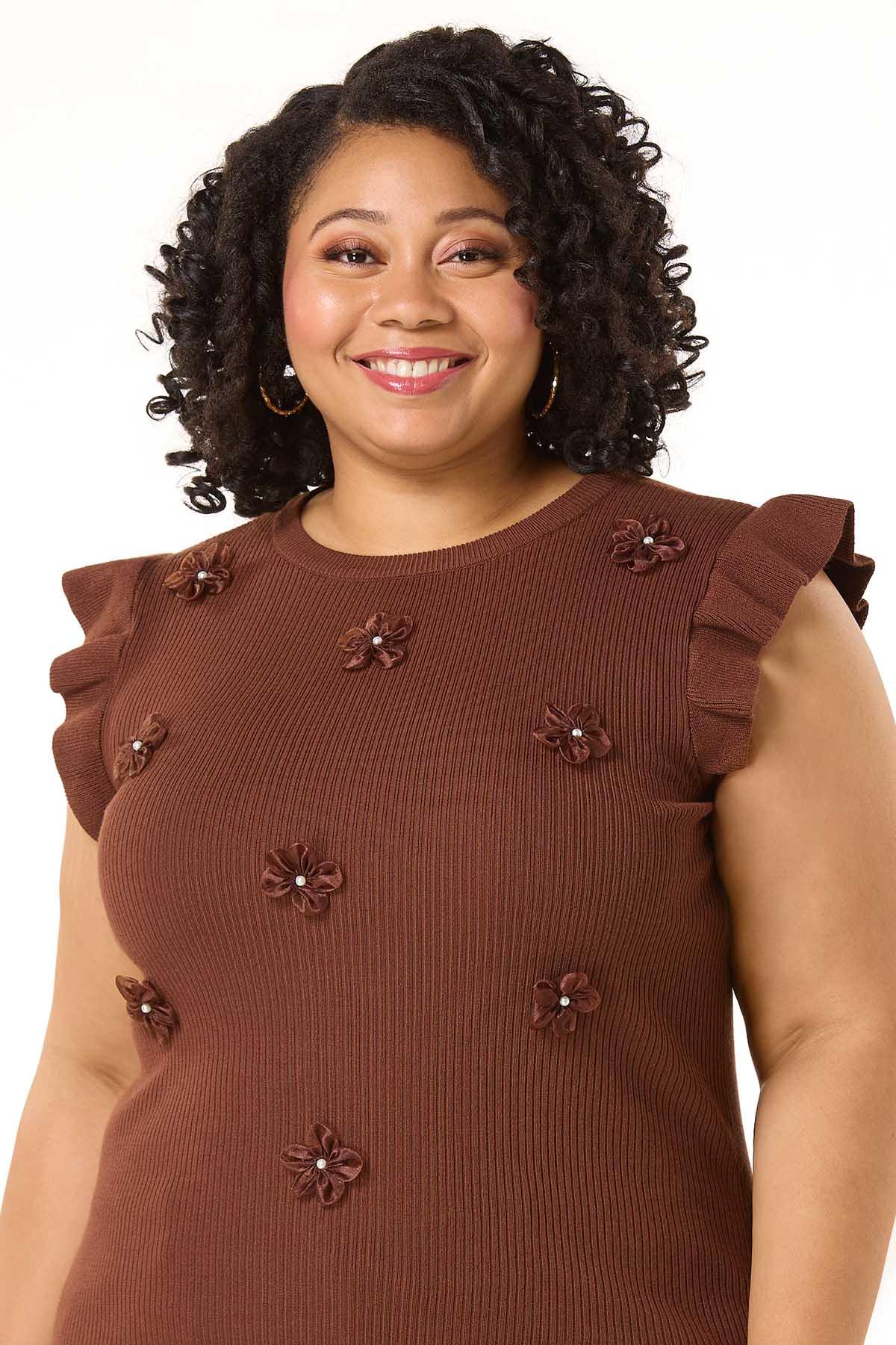 Cue the compliments because this charming look is ready to make you swoon. With a scoop neckline, ribbed texture, ruffled sleeves and a 3d print adorned with pretty, little pearls, this sweet sweater is coming in hot.
