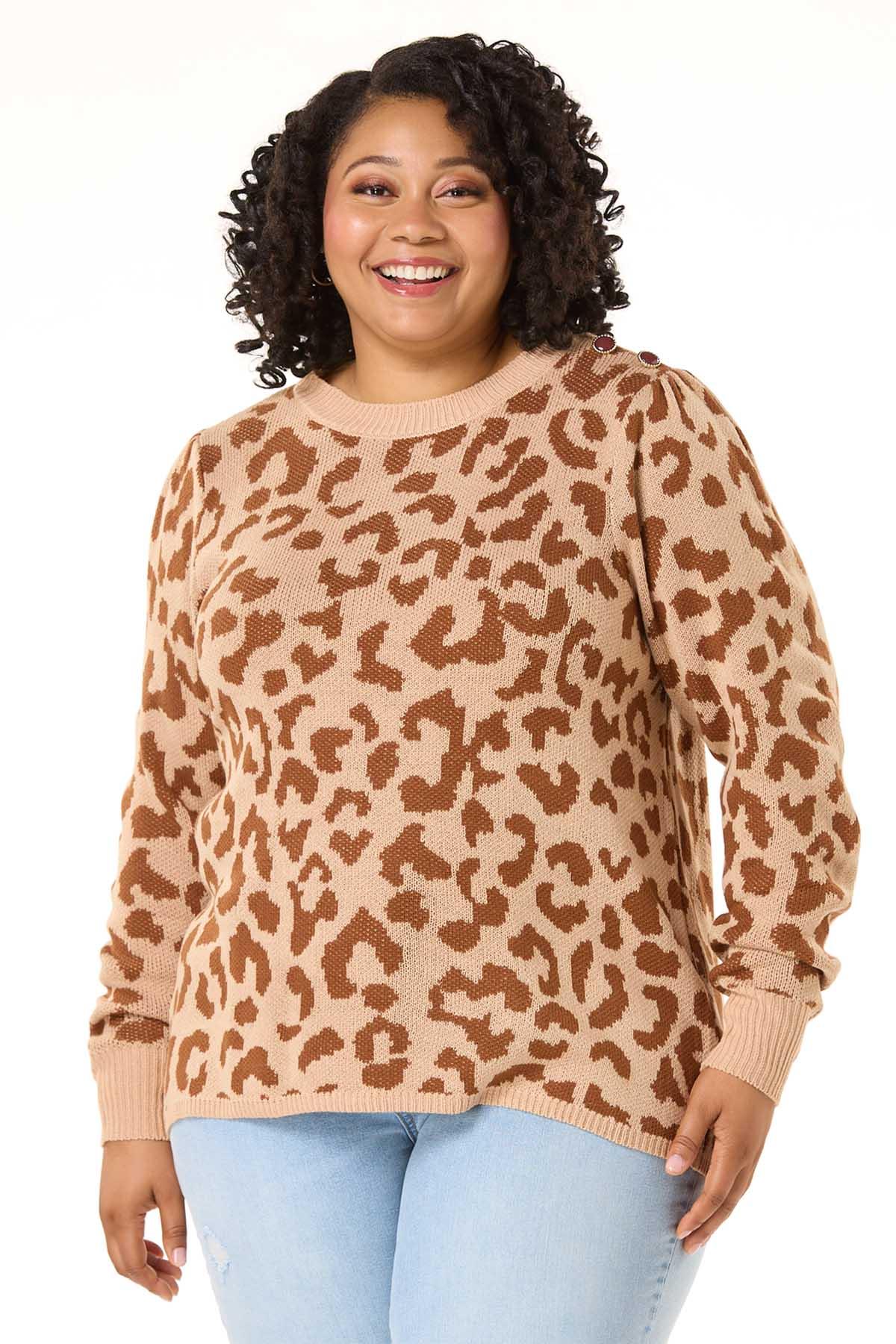 Warm up your wardrobe with this wildly cute style, featuring gold-trimmed buttons, a so-soft feel, relaxed fit and leopard print for a look you’ll love to show up for those cold temps in.