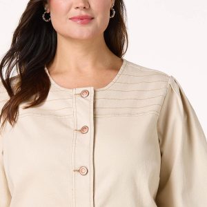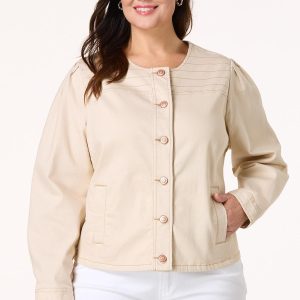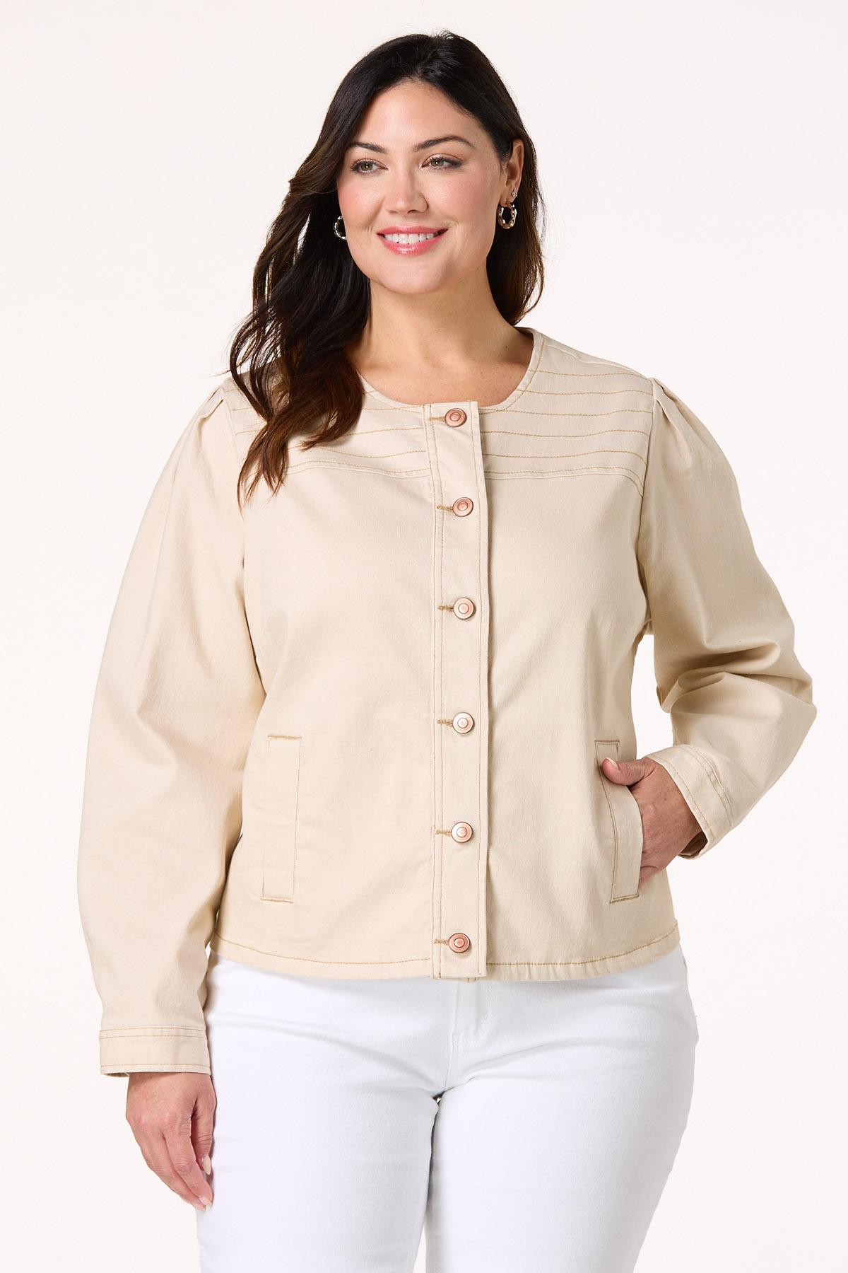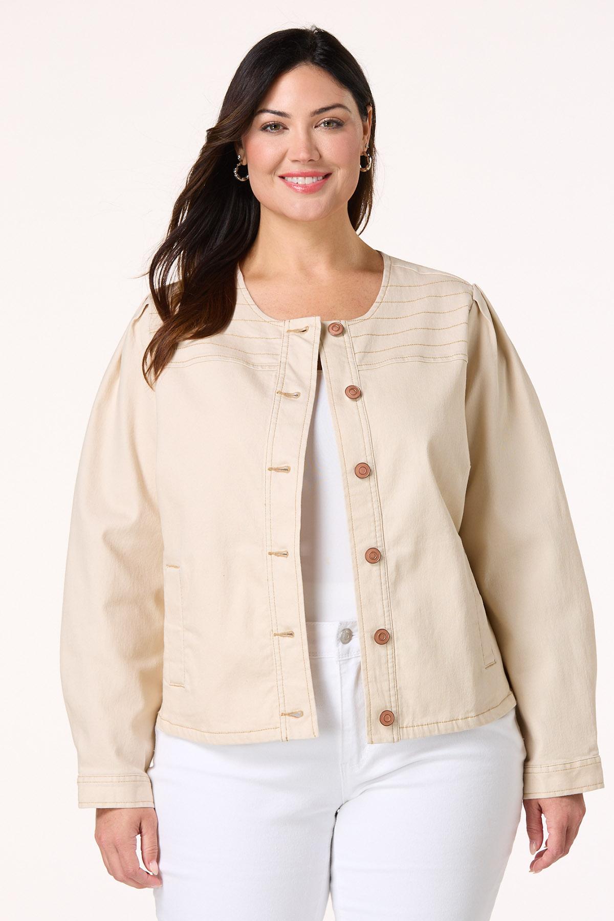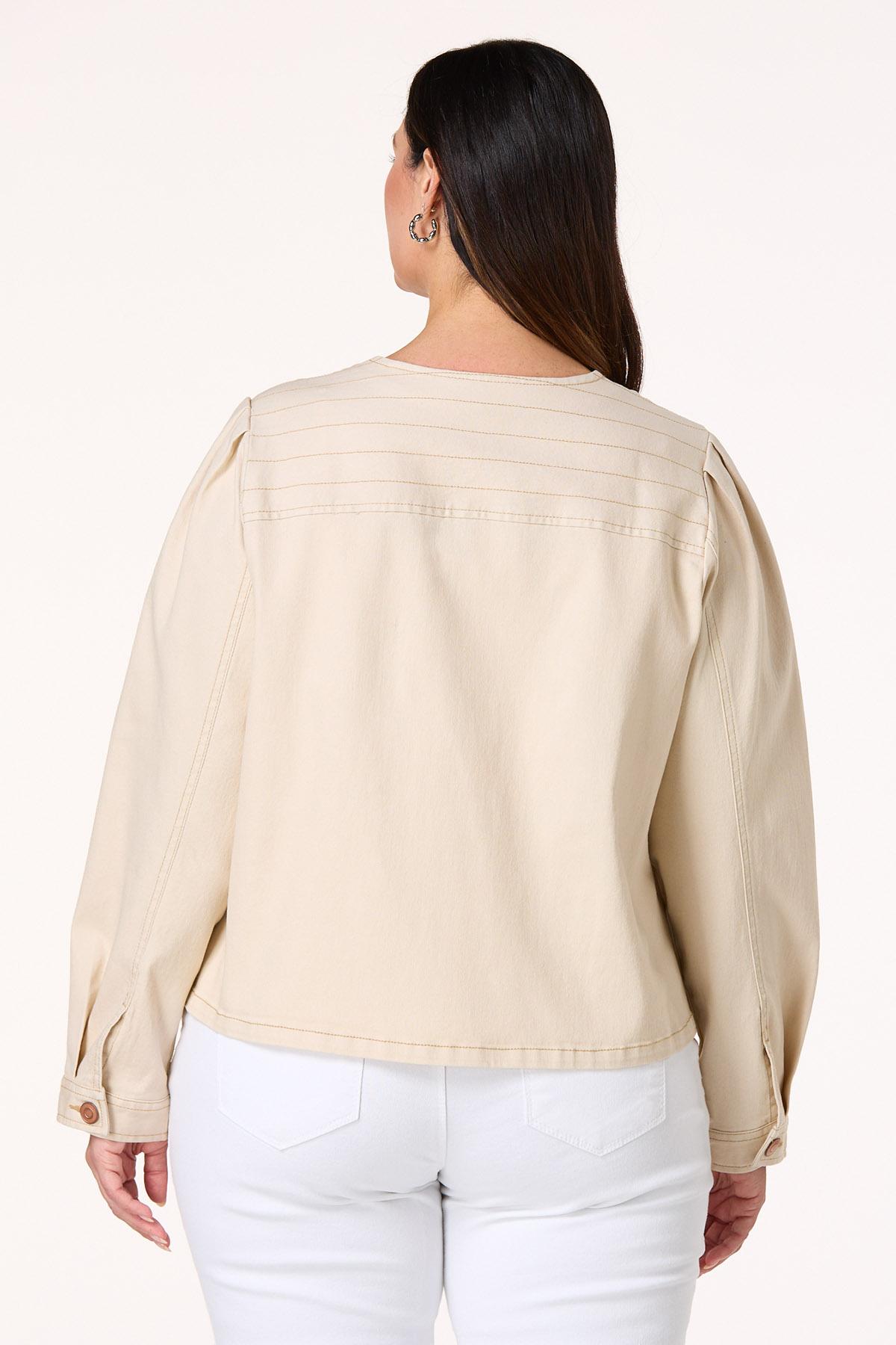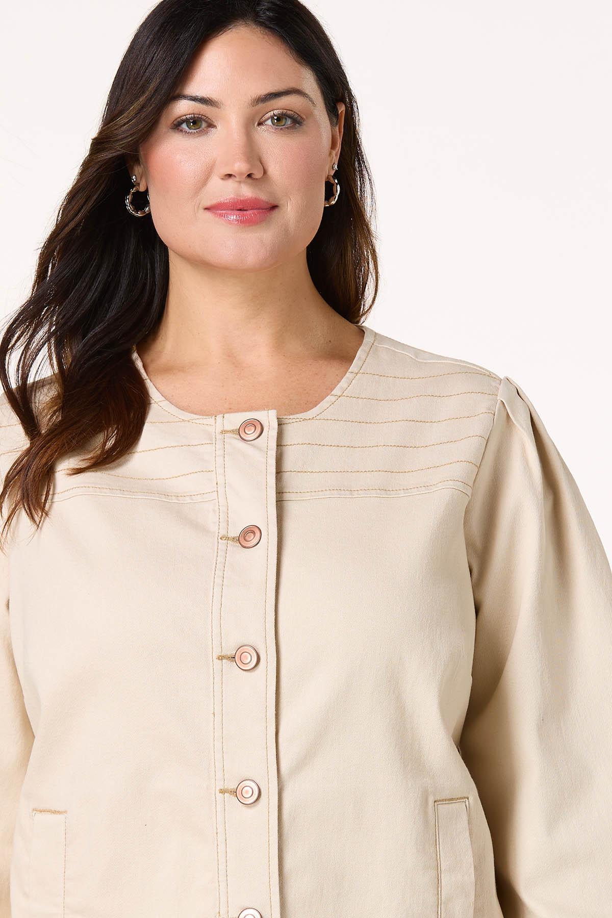 Plus Size Beige Contrast Stitch Denim Jacket