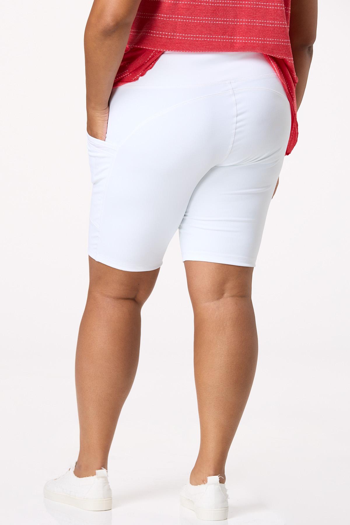 Keep your workout attire comfy and versatile with these pull-on biker shorts, featuring side seam pockets and a stretchy, easy-moving fit.