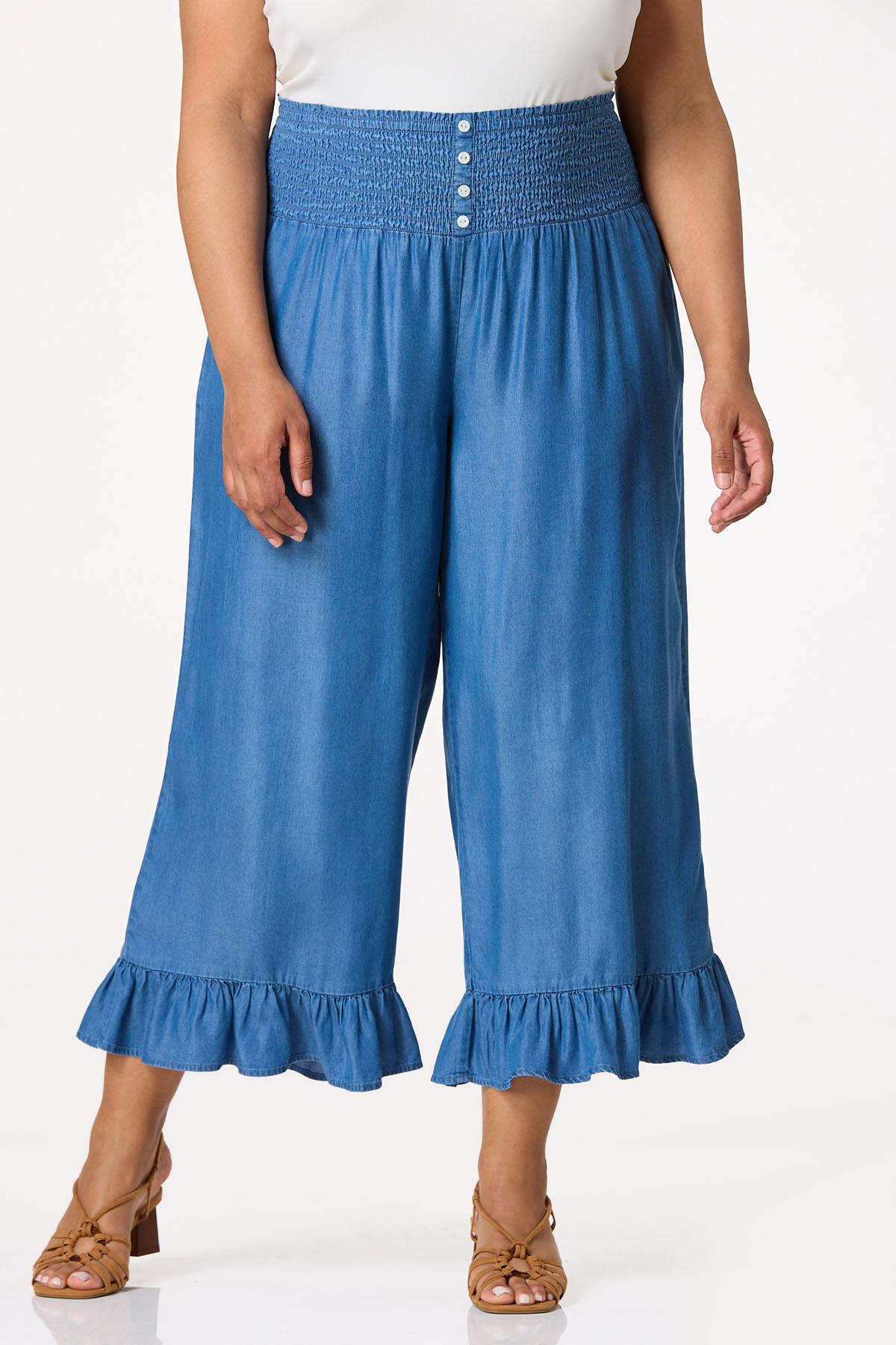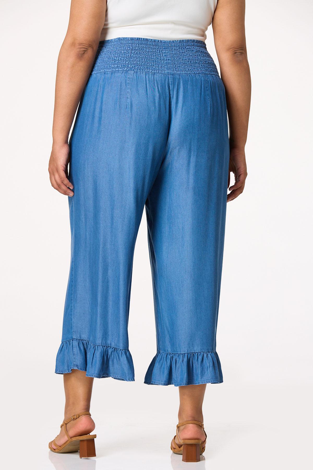 These cropped chambray pants feature a flattering smocked waistband that moves with you, while the ruffle hem adds a playful, feminine finish. Lightweight and effortlessly chic, they’re your go-to for sunny strolls, weekend brunch, or anything in between.