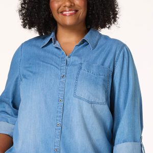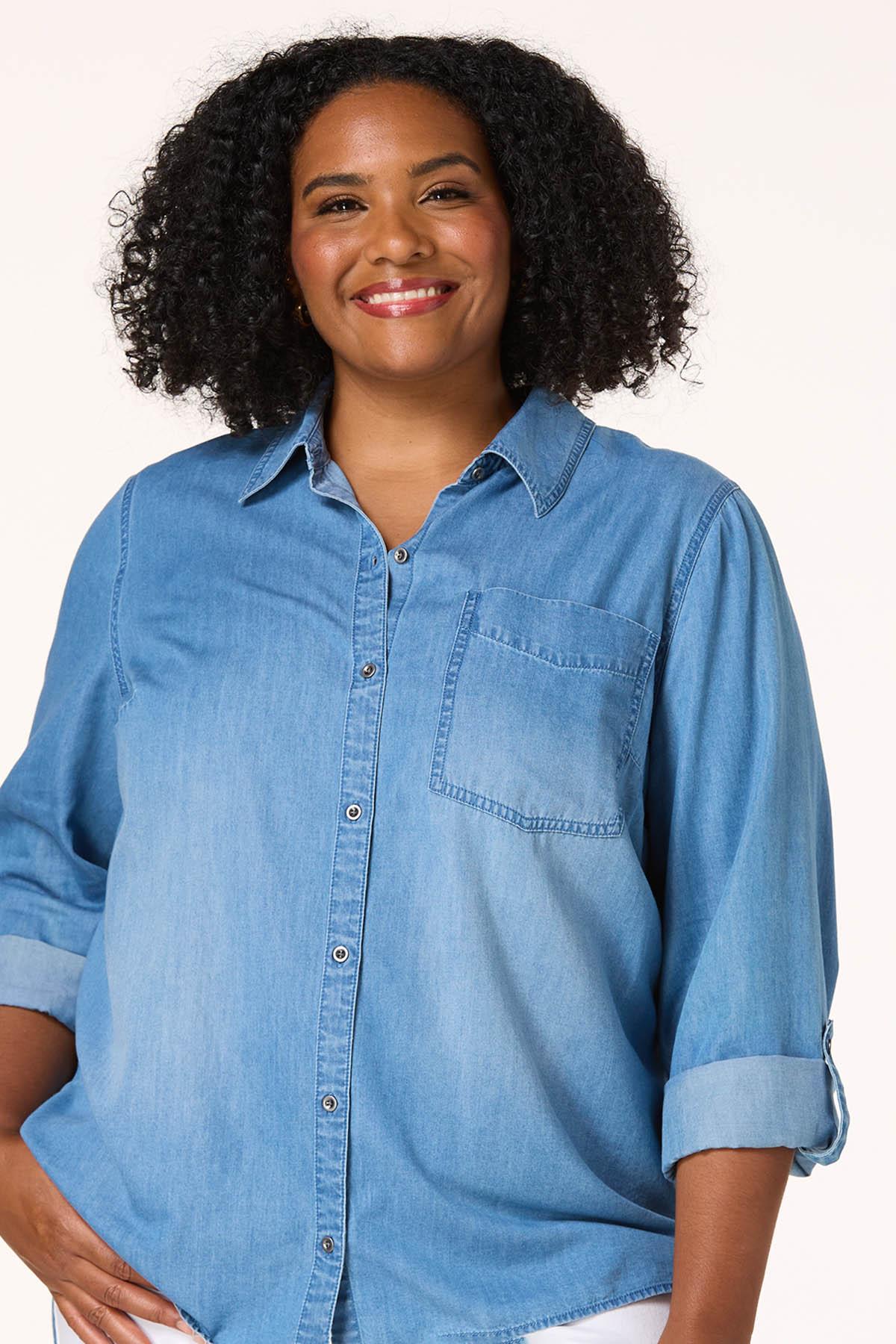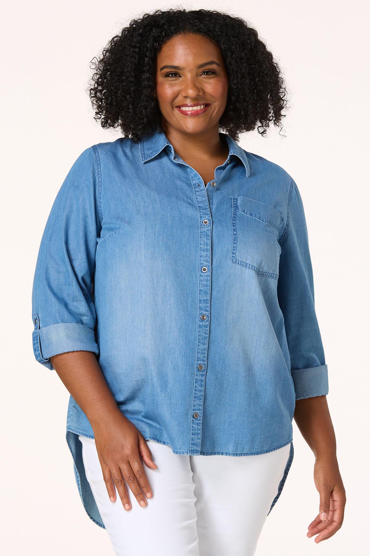 Plus Size Chambray High Low Shirt
