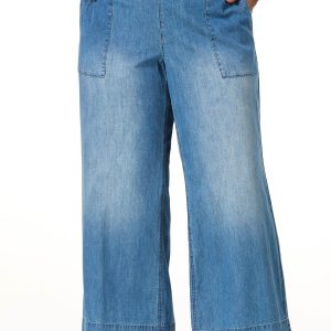 These blue chambray wide-leg pants are all about comfort and style. With a pull-on stretch waist and slant patch pockets, they’re cool and endlessly wearable. Lightweight, relaxed, and ready for anything.