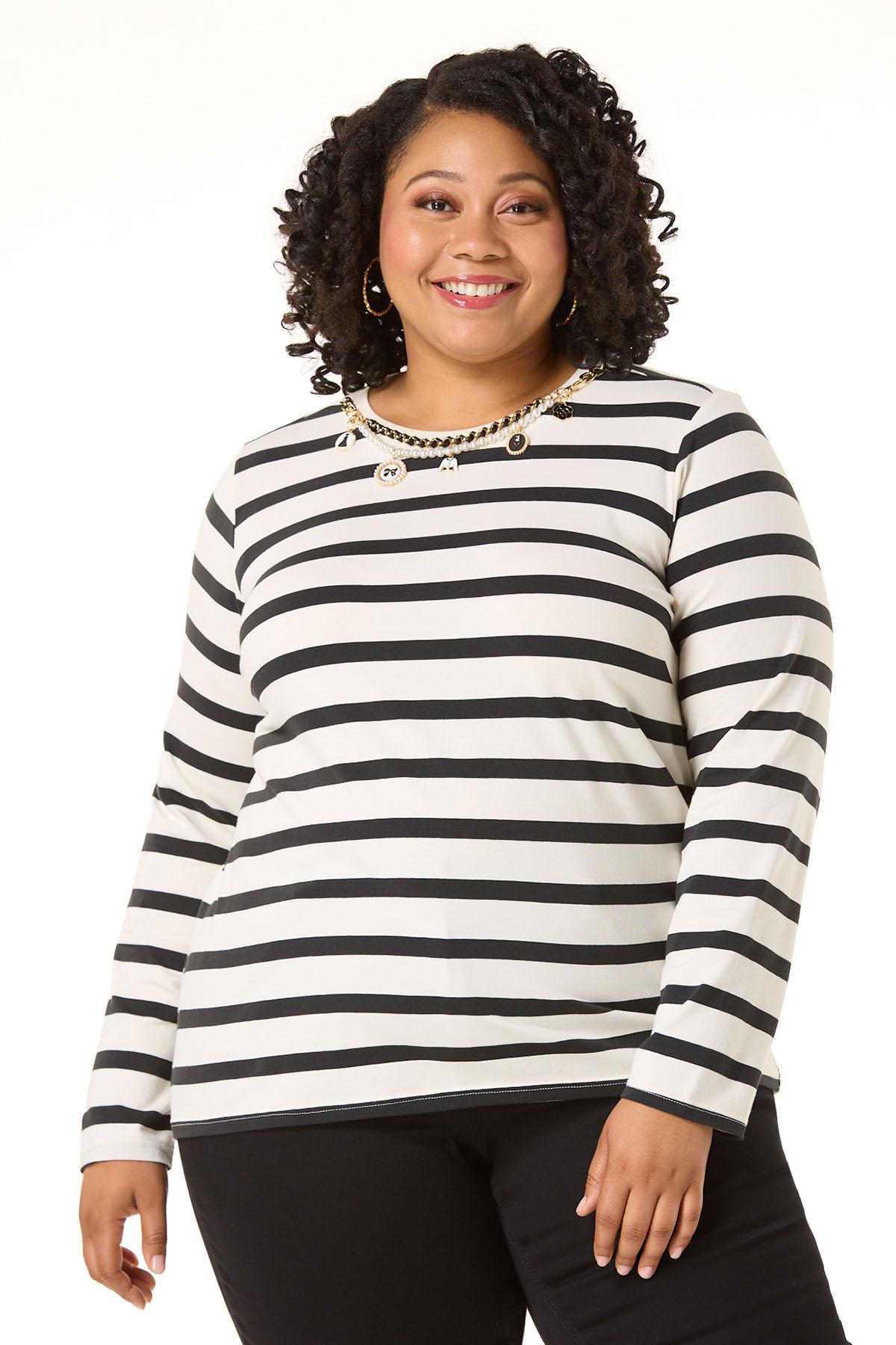 Plus Size Charm Necklace Stripe Top