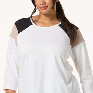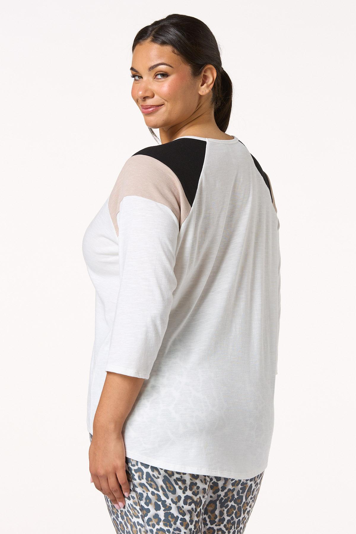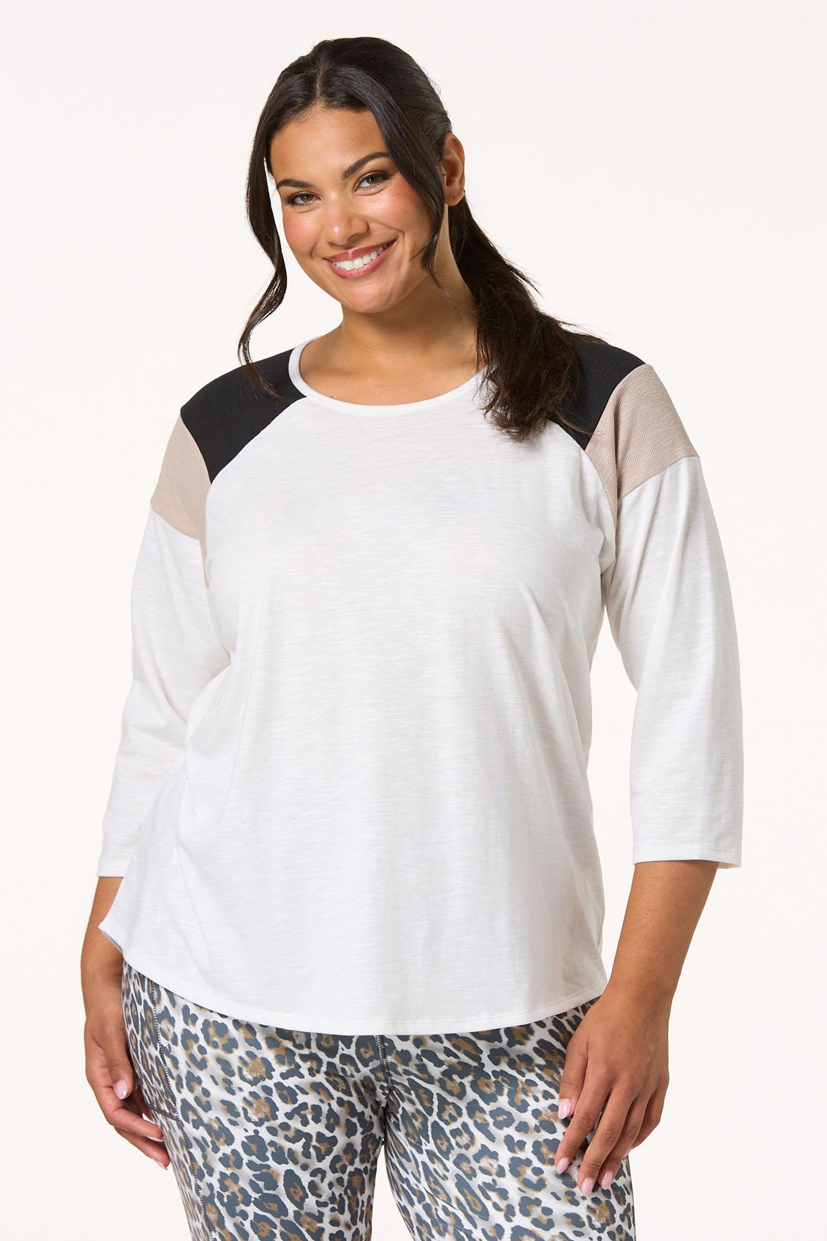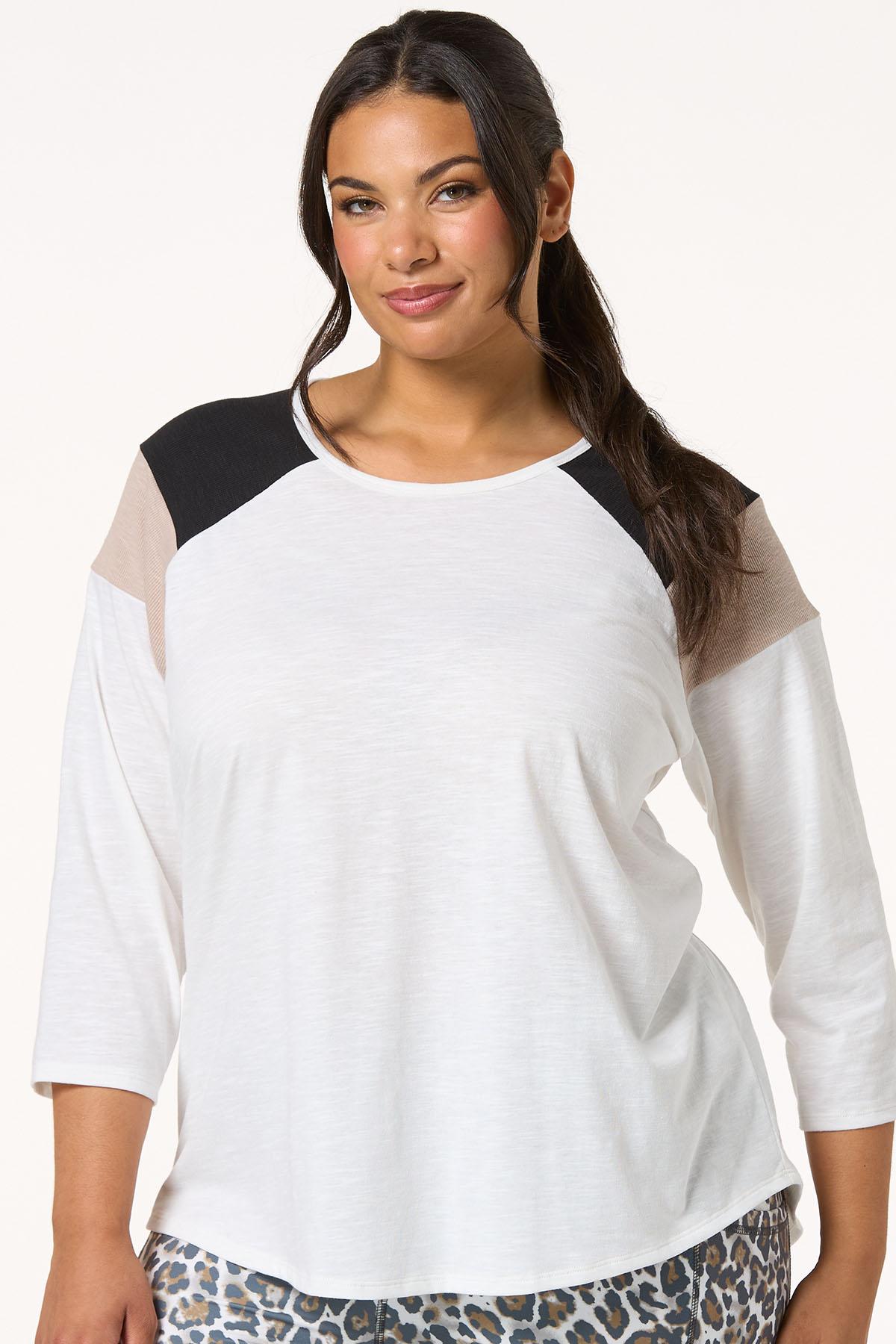 Add a pop of flair to your everyday look with this 3/4 sleeve top with colorblock ribbed should detail. Part of our lifestyle collection, this piece blends bold contrast with relaxed comfort – perfect for everything from weekend errands to casual workdays.