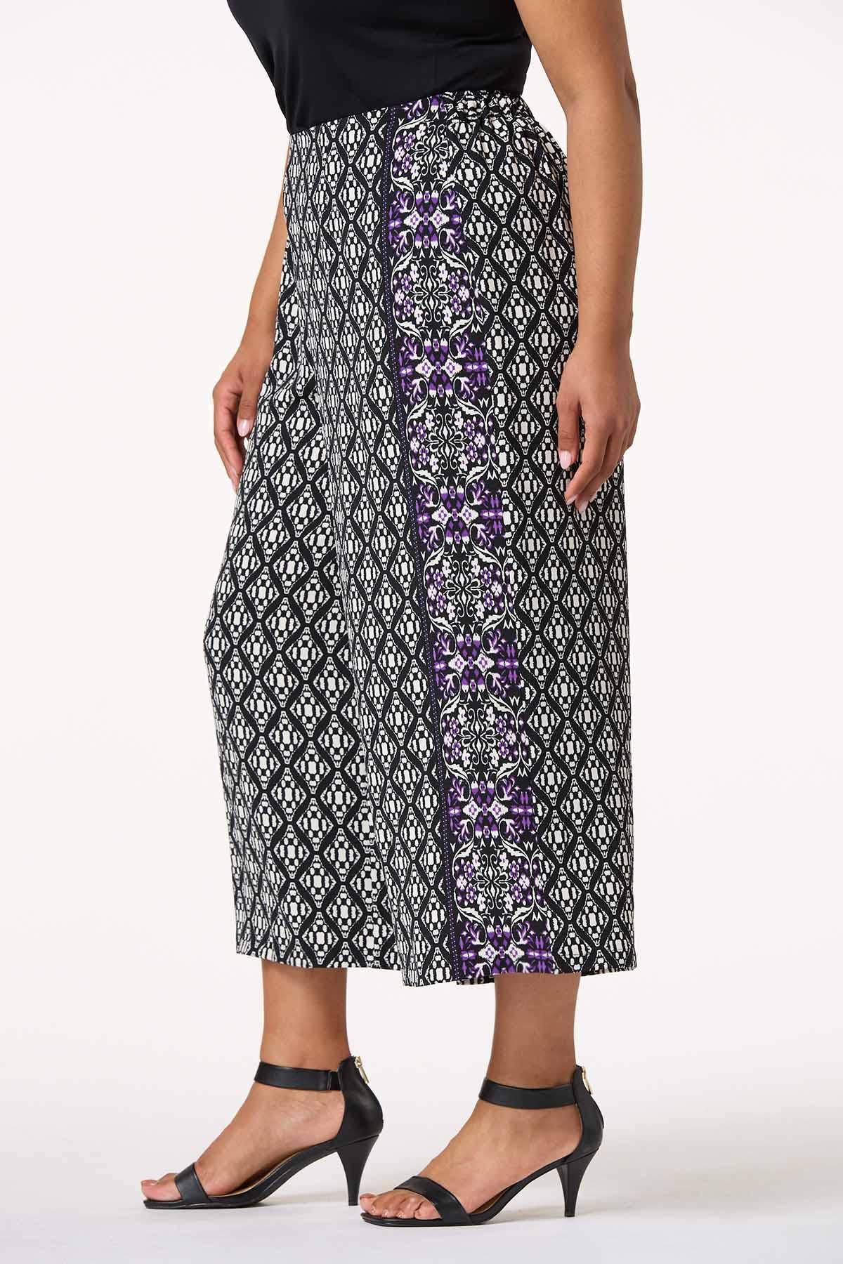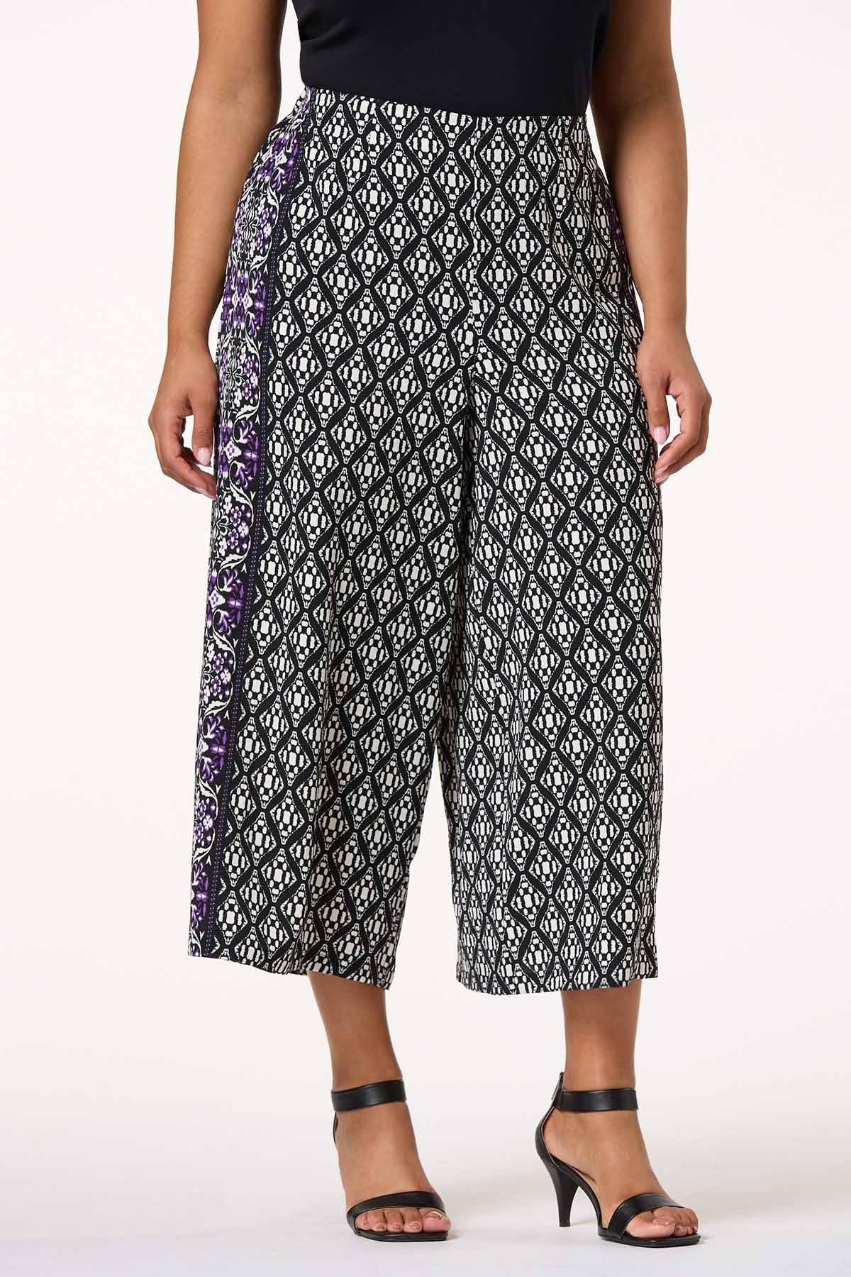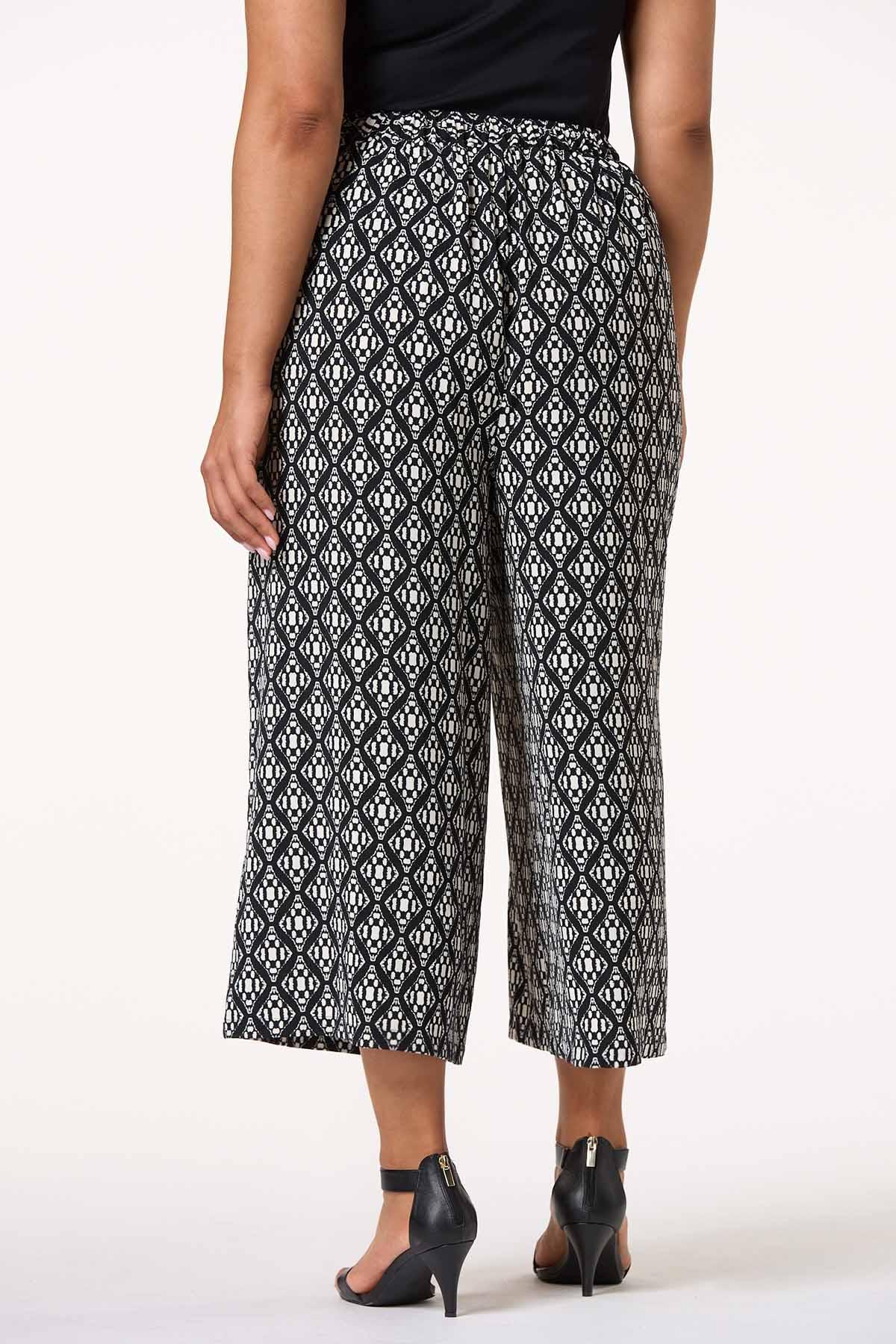 Breeze into the season with the cool and chic look of this wide leg style, featuring an elastic waist, medallion print and contrasting-bordered side for a look that’s easy to love and pair with a solid white tee or tank.