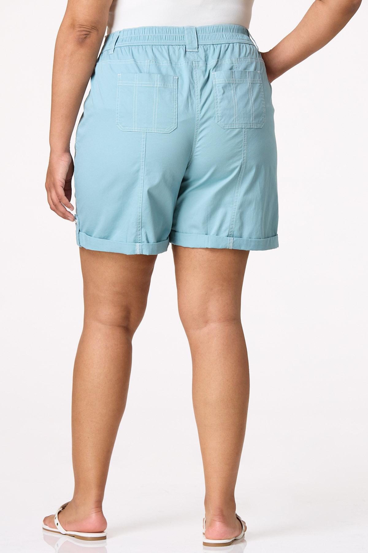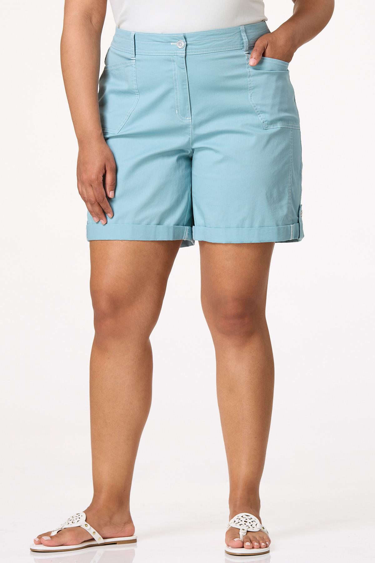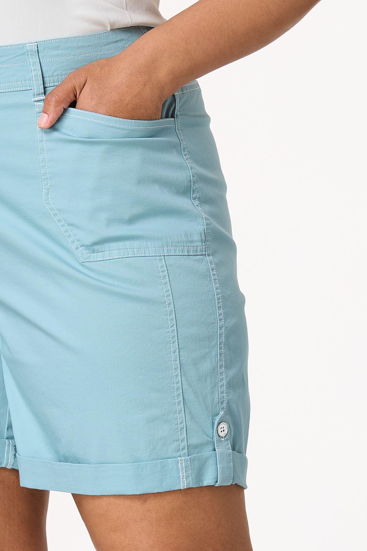 Keeping cool and looking so-chic is easy-to-do with this roll tab style. Starting with the beautiful shade of blue and continuing with side pockets, contrasting stitch and a rolled hem, these shorts are certainly ready for sun and fun.
