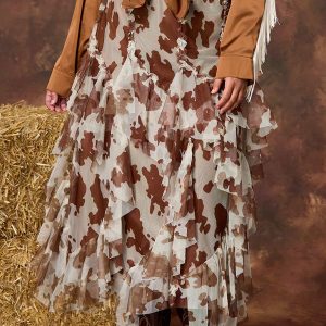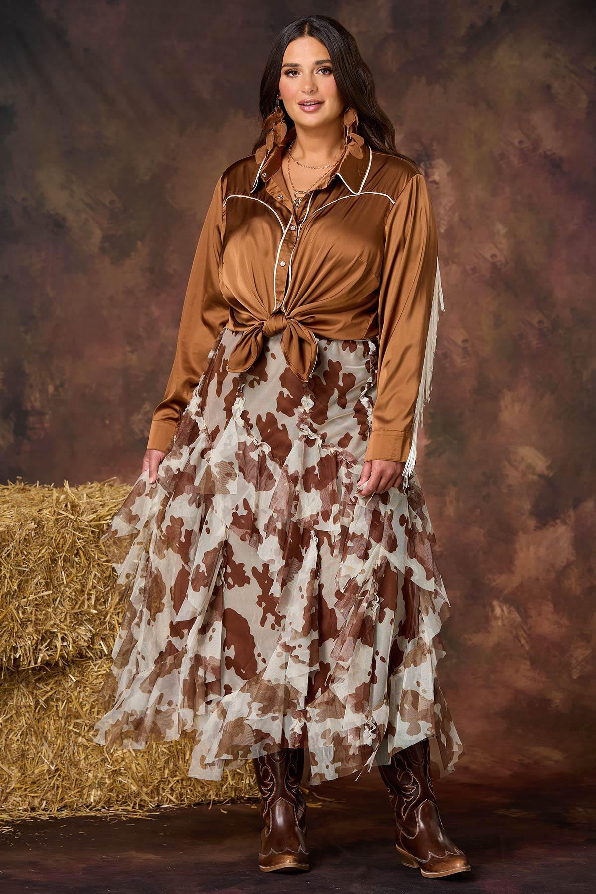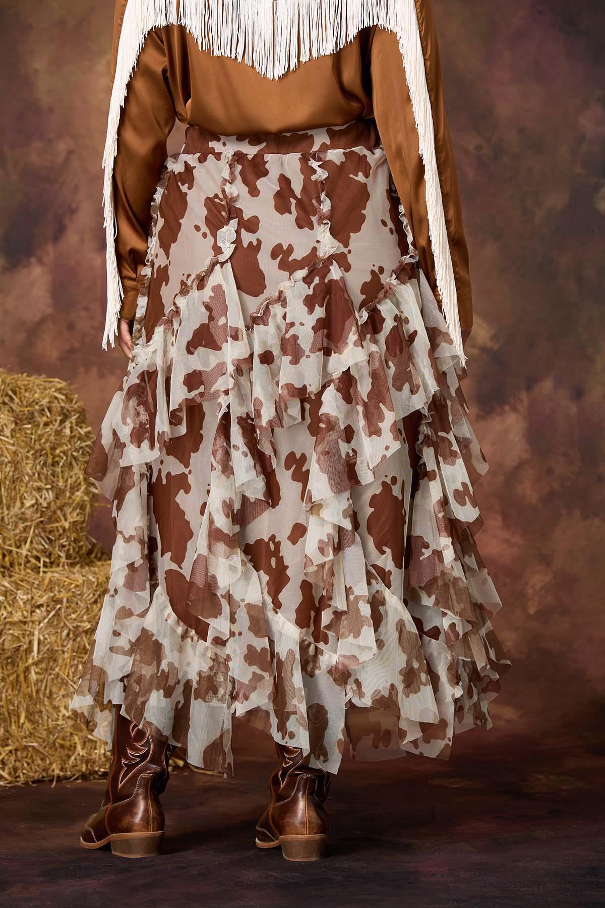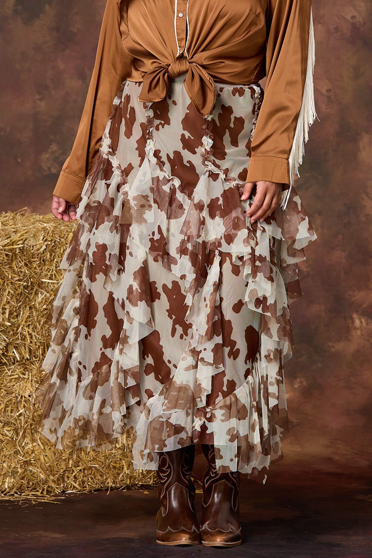 Plus Size Cow Print Mesh Skirt