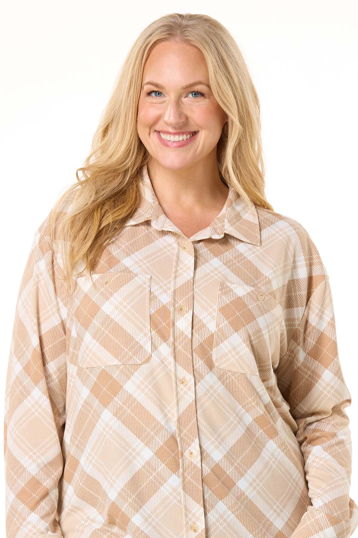 All the fall feels are right here with this cozy, layering piece, featuring a check pattern, button down front, shades of beige and a classic collared neckline with front pockets and a so-soft knit. Layer over your favorite graphic tee, grab your go-to jeans and head out the door with a pumpkin spice latte and take on those autumn afternoons in style.