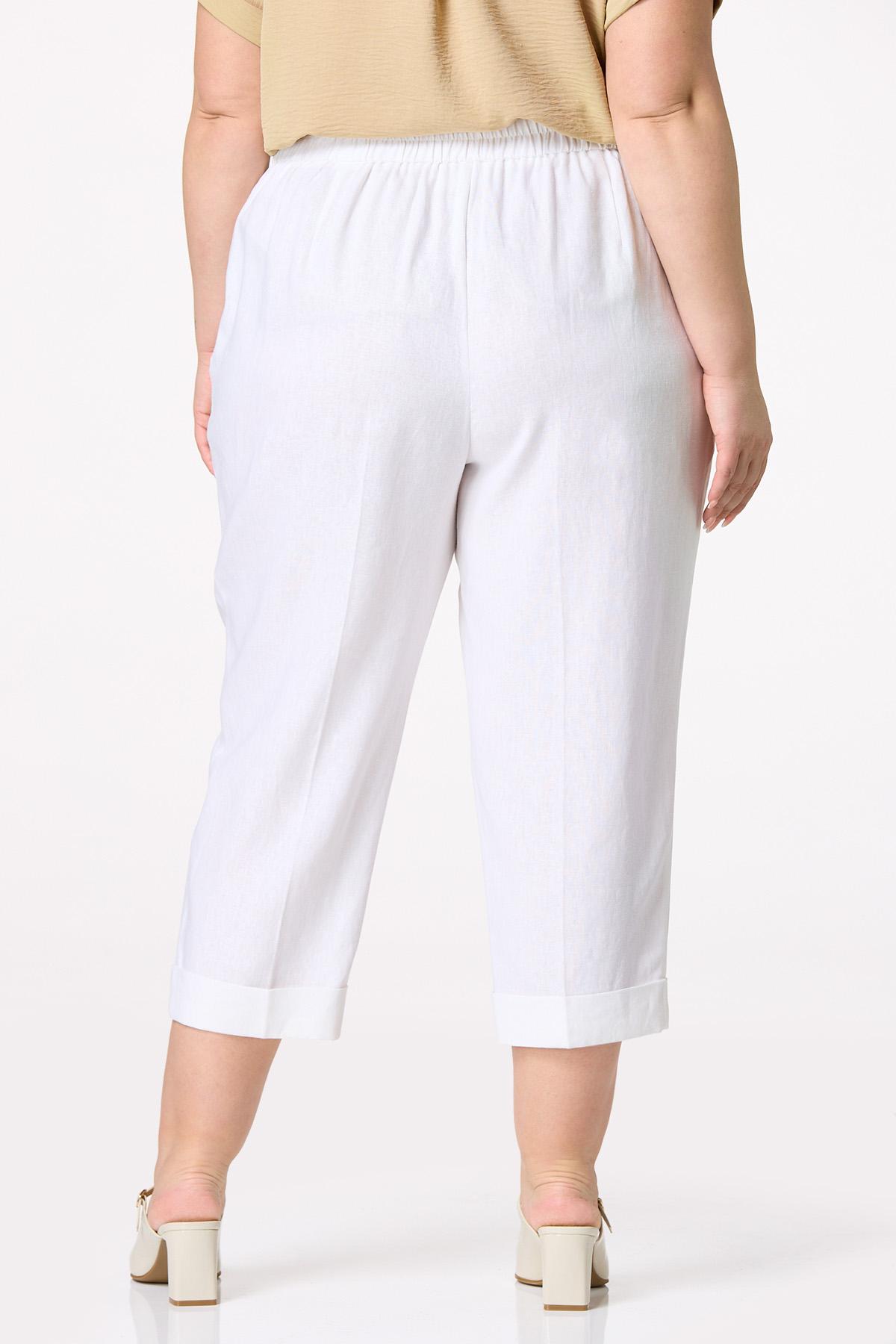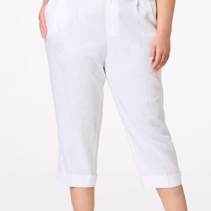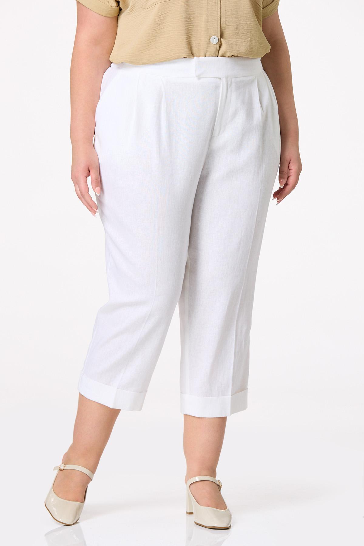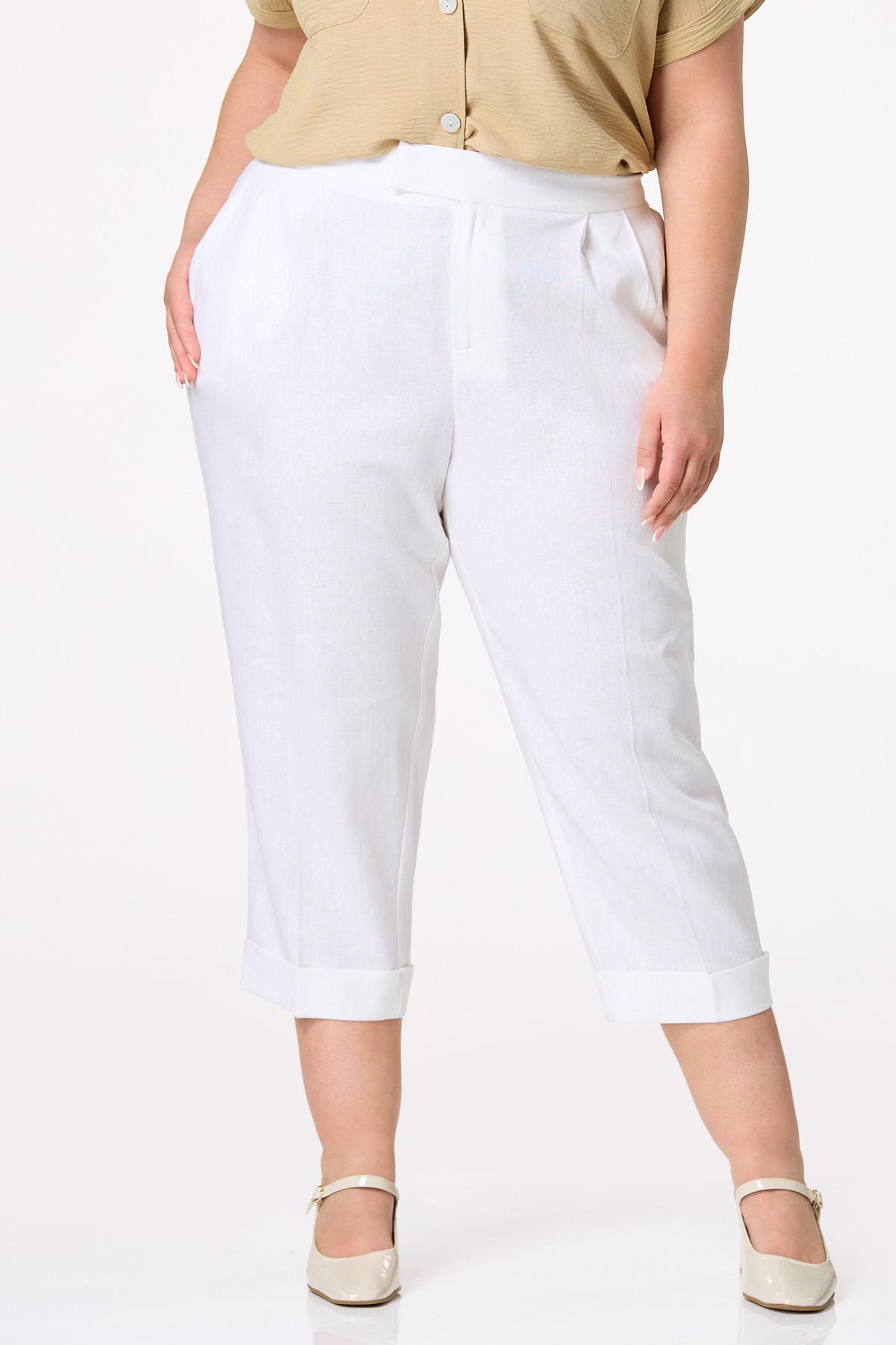 Look polished and ready to take on the day with this cropped style, featuring a hook and bar closure, side pocket detail, pleated front and white hue topping a cool linen blend.