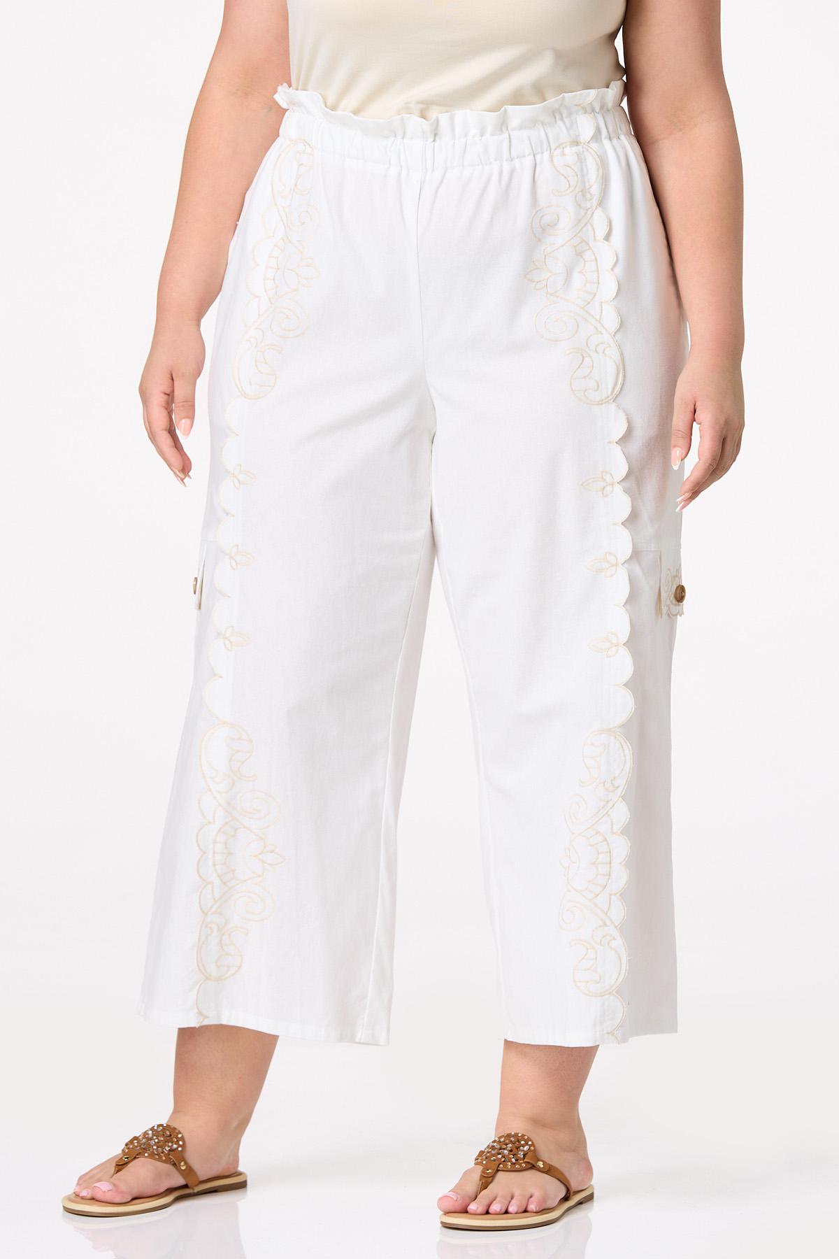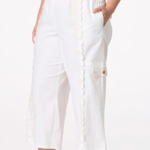 We’re “warming” you – you’ll want to add this wide leg style to cart quick. Part of our Cato Collection, these limited edition pants have us swooning and will have you swooning, too with their elastic, paperbag waist, pretty-paisley embroidery, scalloped trim and cargo pockets.