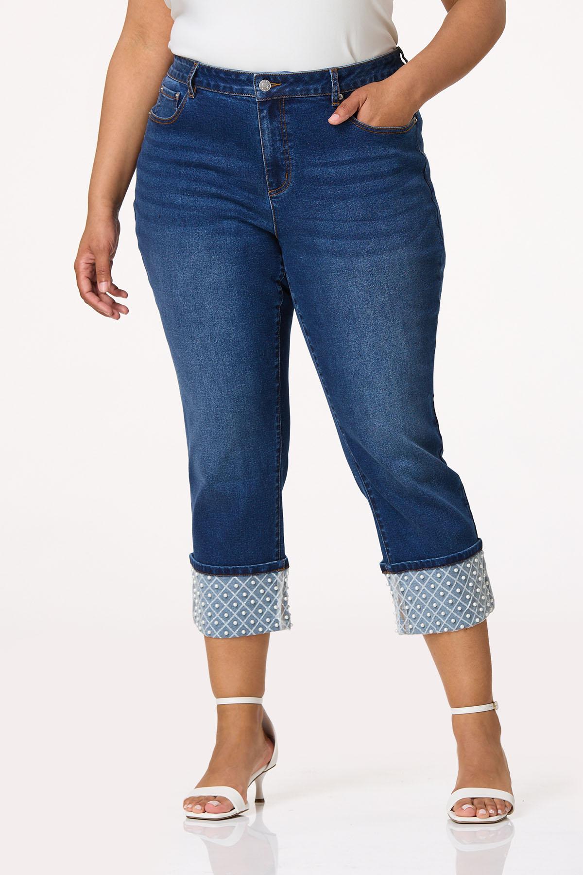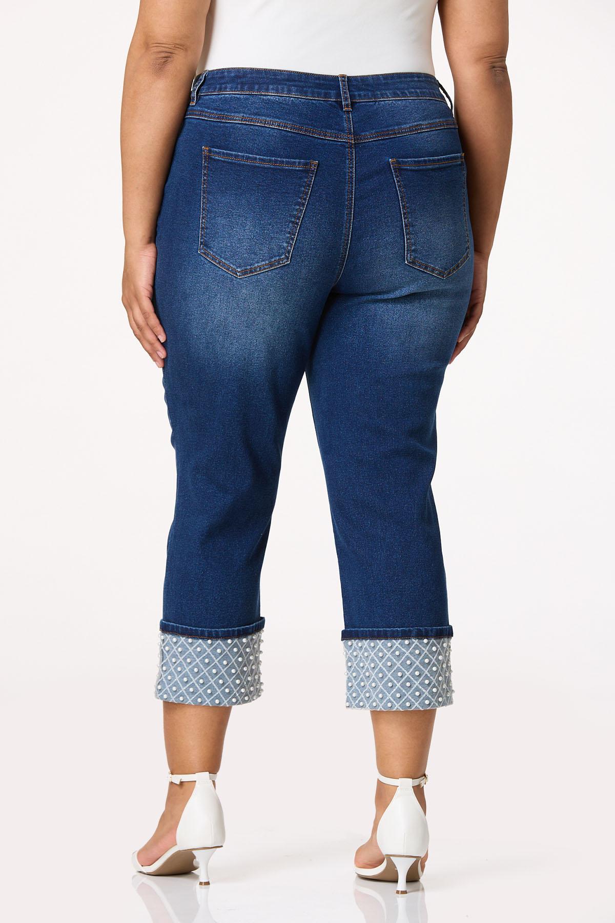 Denim does it again and this cropped style is coming in hot this season. Part of our Cato Collection, you’ll love the comfortable-stretch fit, cool-cropped length and cuffed hem adorned with a diamond design, hint of shimmer and pretty-pearl detail.