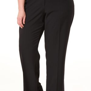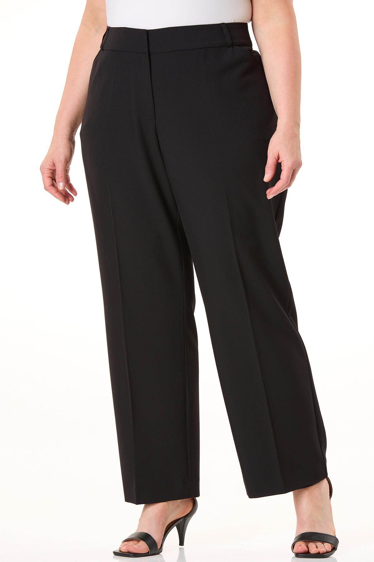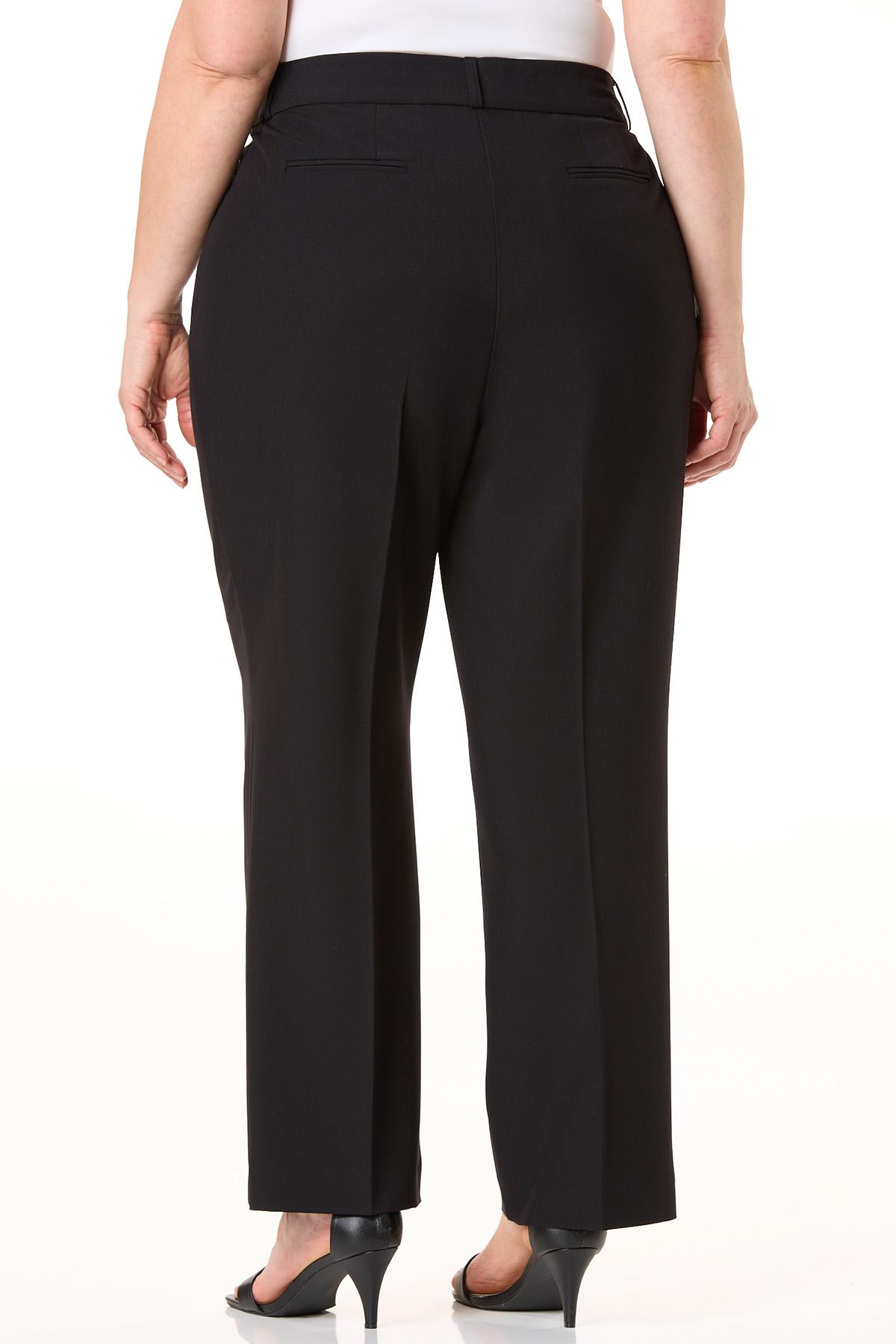 Dress for success with these woven trouser pants, featuring a flattering, curvy fit and classic black hue for a look that is polished and chic.
