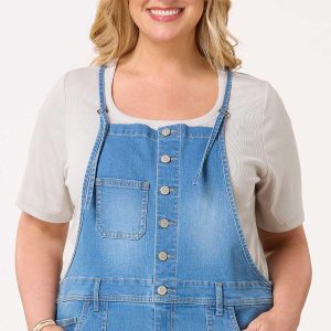 Cute is calling with the retro feel of this one-piece style, featuring a faded-blue hue, stretchy denim, silver-button detail, front and back pockets and adjustable straps, for a perfect fit. A tank or any one of our tees or basic tops make a perfect pairing to this spring and summer must-have.
