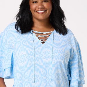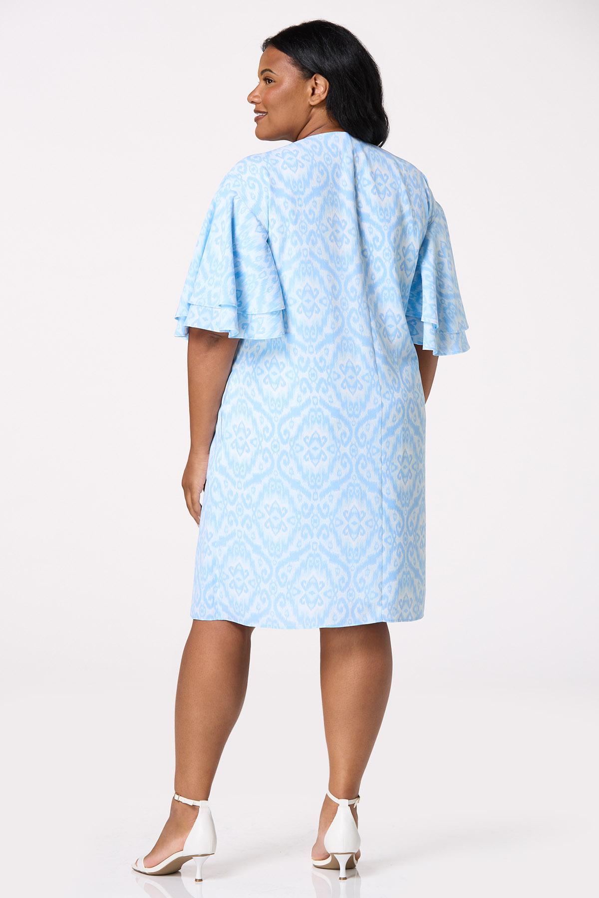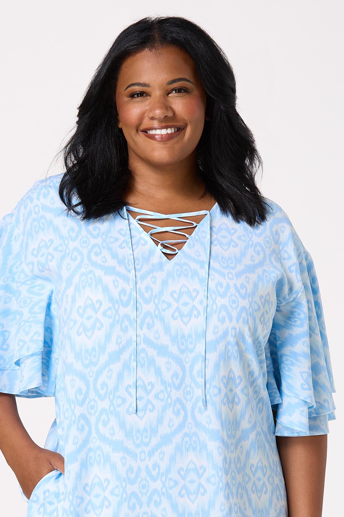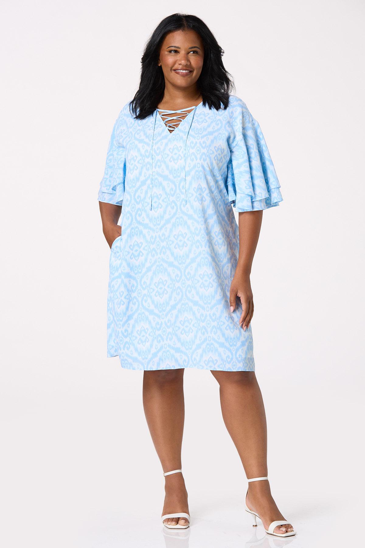 Date nights, the office, summer weddings -oh, my! The sky’s the limit with this dreamy dress. Starting with a lace up v-neckline and continuing with double-flutter sleeves, a flowy fit and medallion print, this blue and white style will be an amazing fit for whatever is on the agenda.