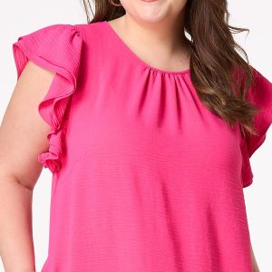 You’ll be sure to capture plenty of attention when you show up wearing this vibrant-pink style. A scoop neckline, double-ruffled sleeves, relaxed fit and effortless, wrinkle-free fabric come together for a look that’s easy to love for those moments in the sun.