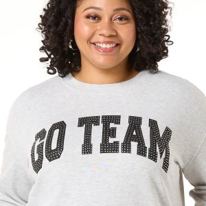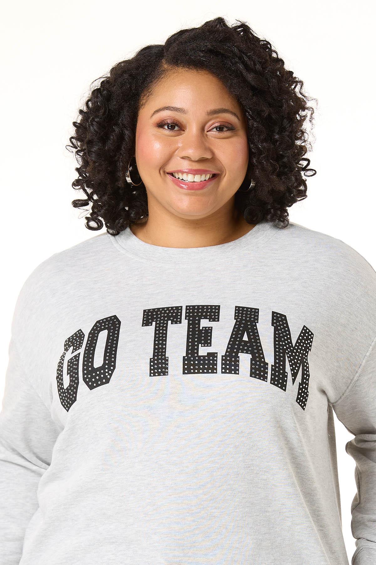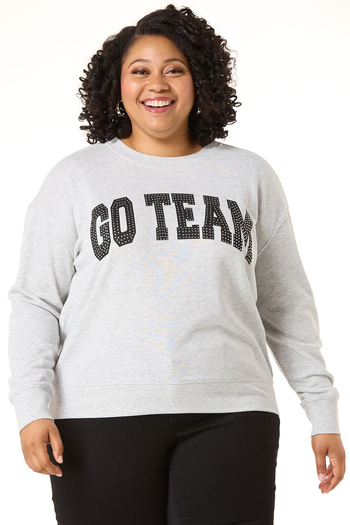 Cheer on your team by showing up in this comfy and spirited sweatshirt, featuring a scoop neckline, so-soft feel, relaxed fit and a “Go Team” graphic with stud accents for those shining moments you don’t want to miss.