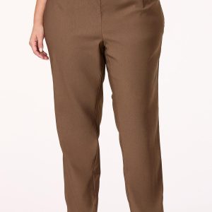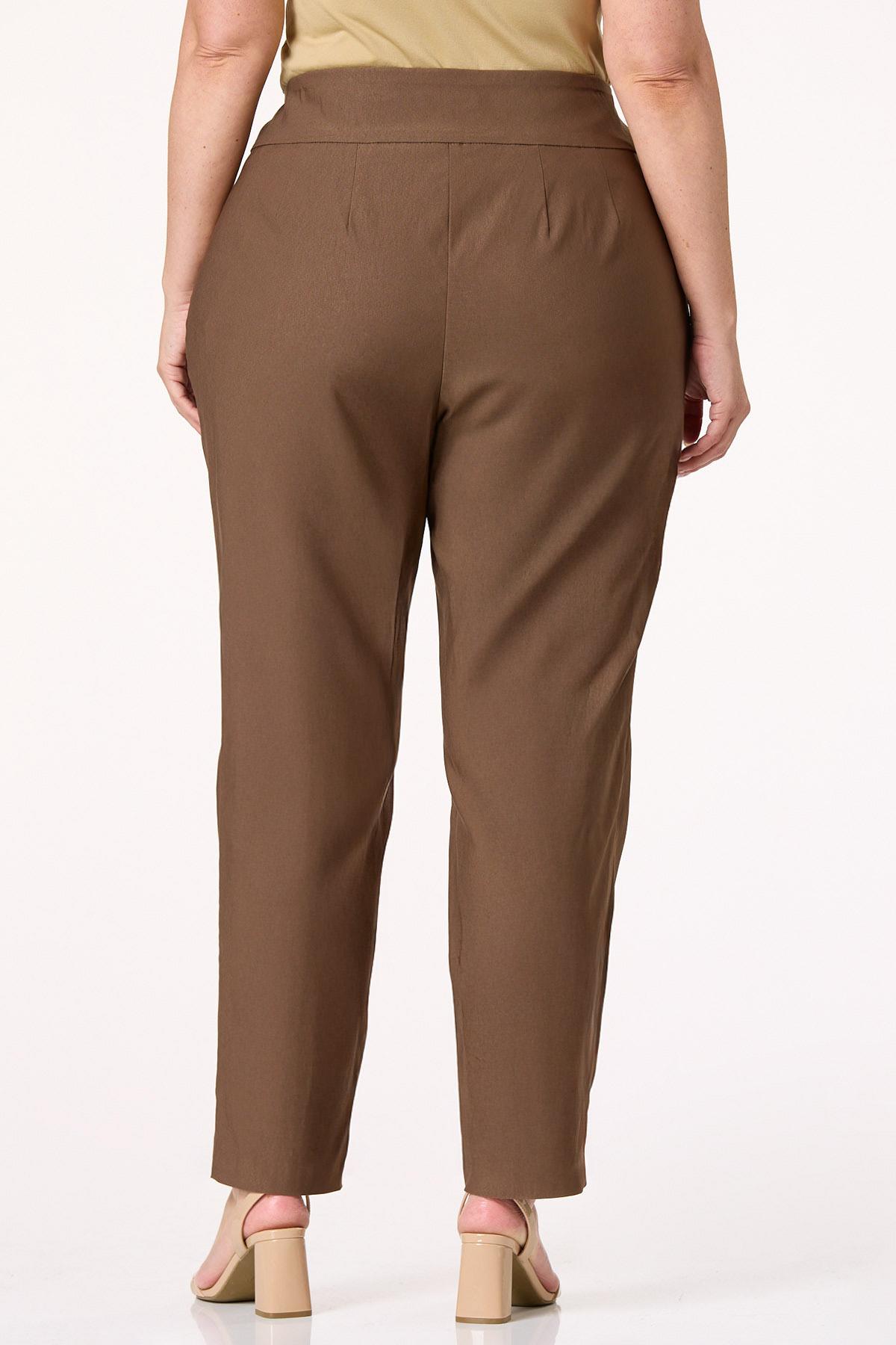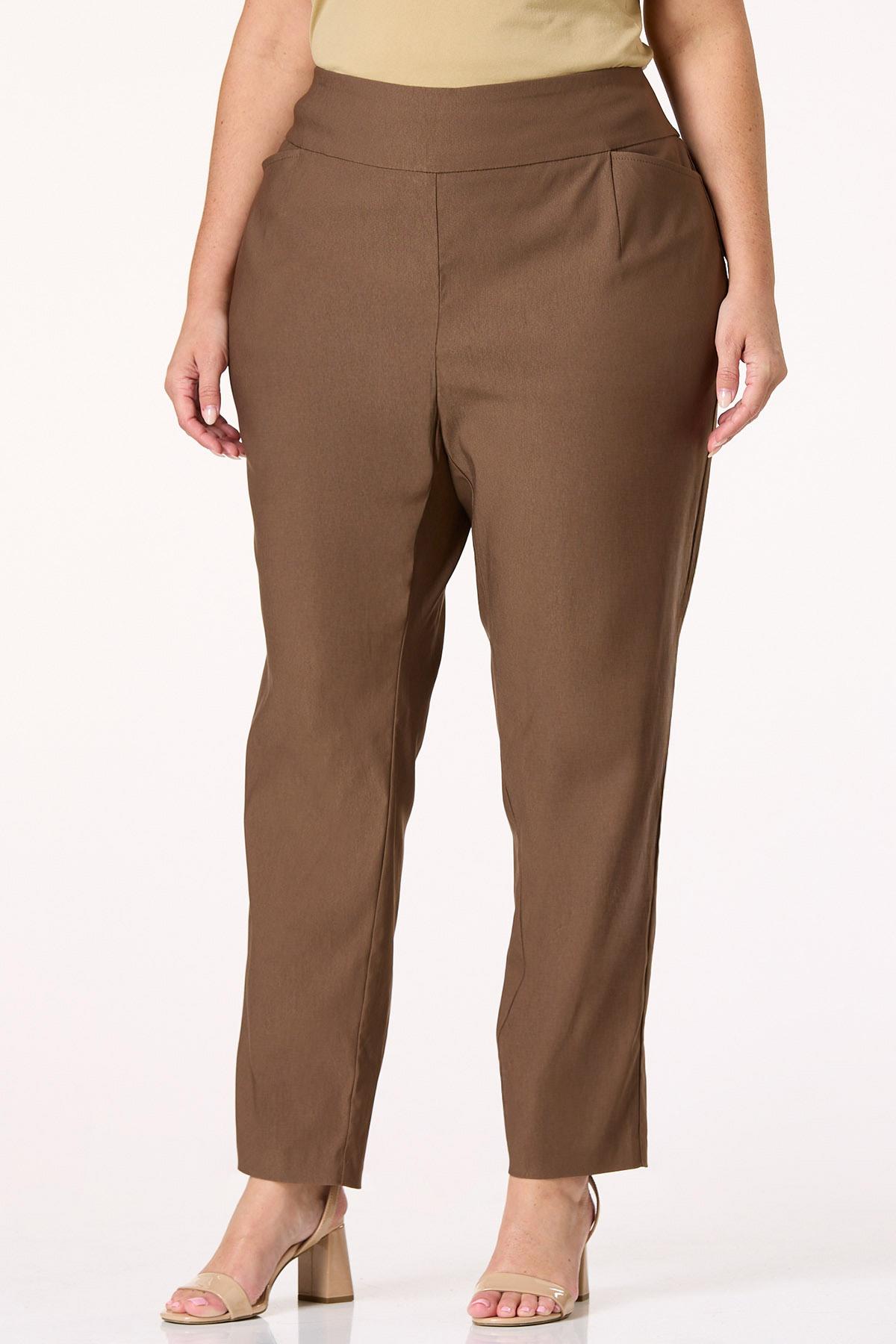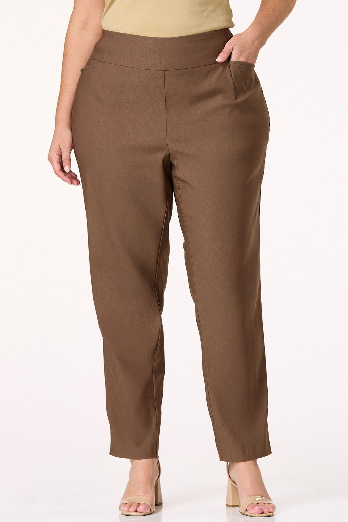Our soft, best-selling fabric, now in this wear-anywhere style…yes, please! Super soft-stretchy bengaline fabric features a solid brown hue, high-rise pull-on waist, side pockets and a slim-leg fit for style you can dress up or down depending on your plans.