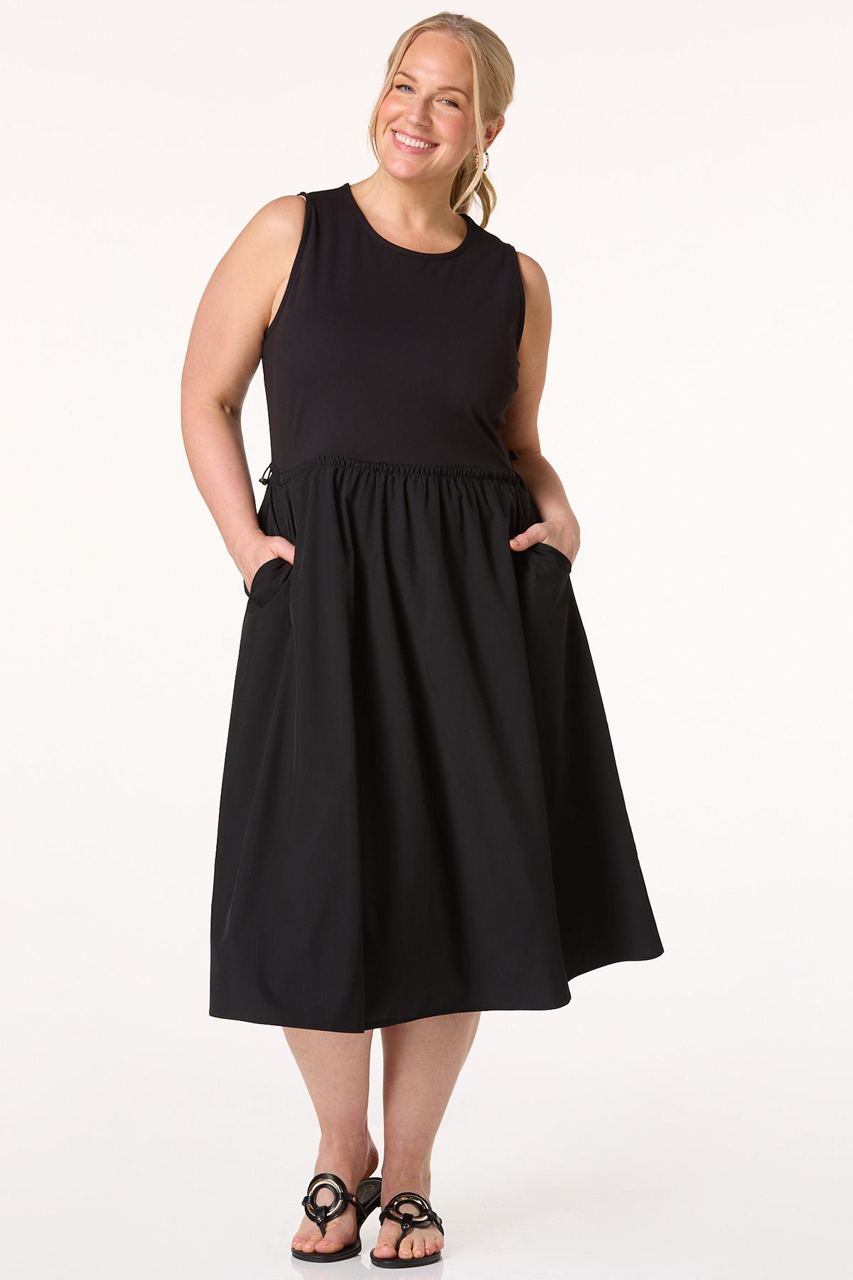 Plus Size Fabric Mix Cinch Waist Dress