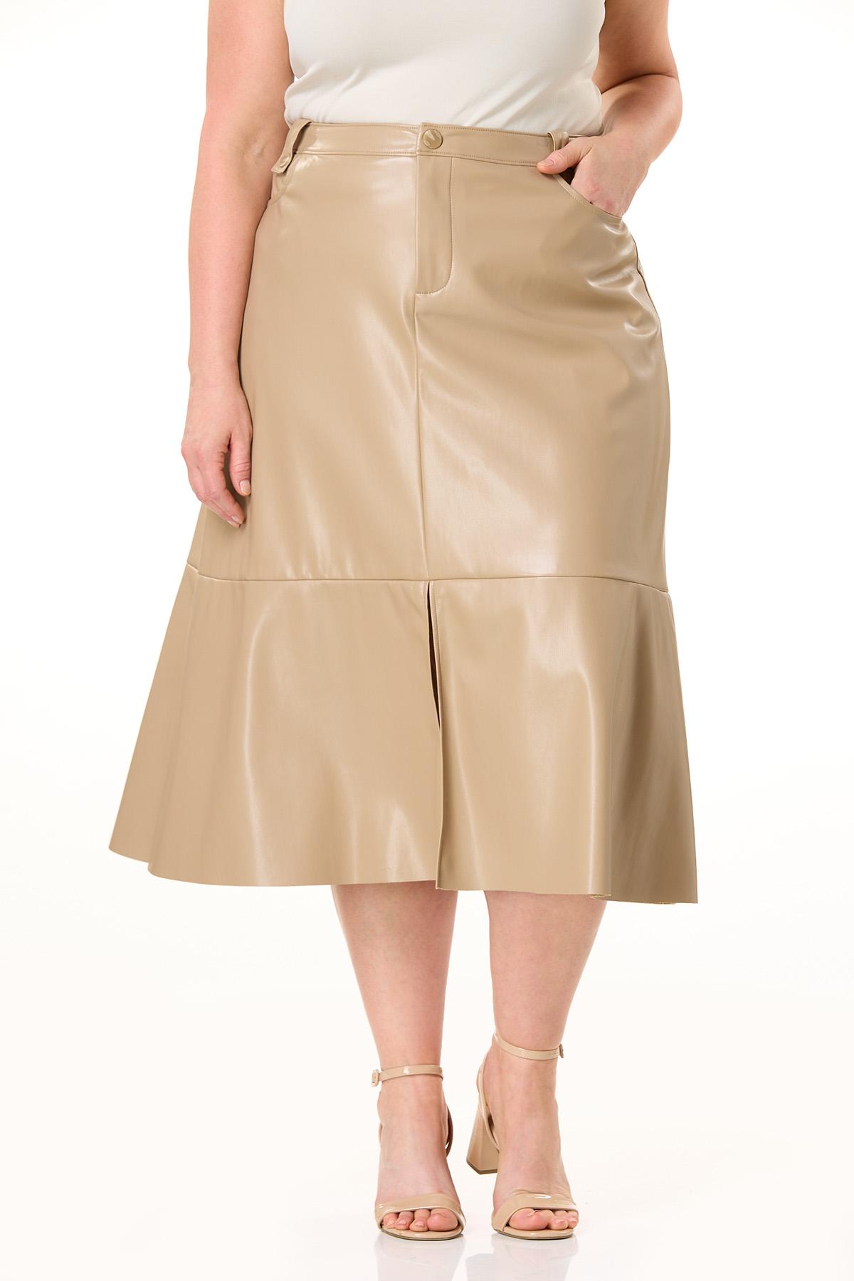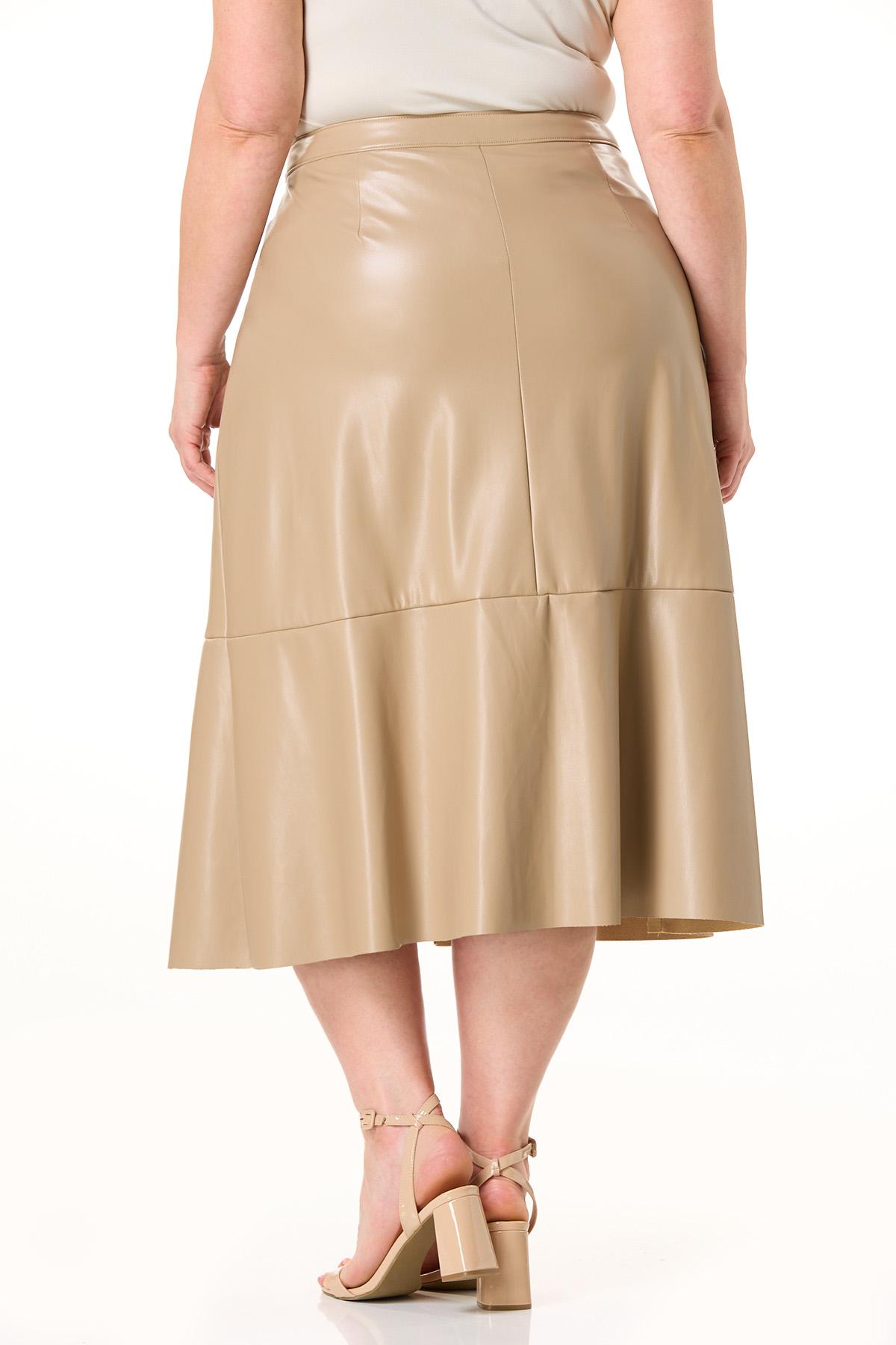 Dressing for the weather is easy to do when you have a faux leather style like this. Starting with a button closure and continuing with a button tab detail, seamed design and slit hem, this sleek skirt is just what the season is calling for.