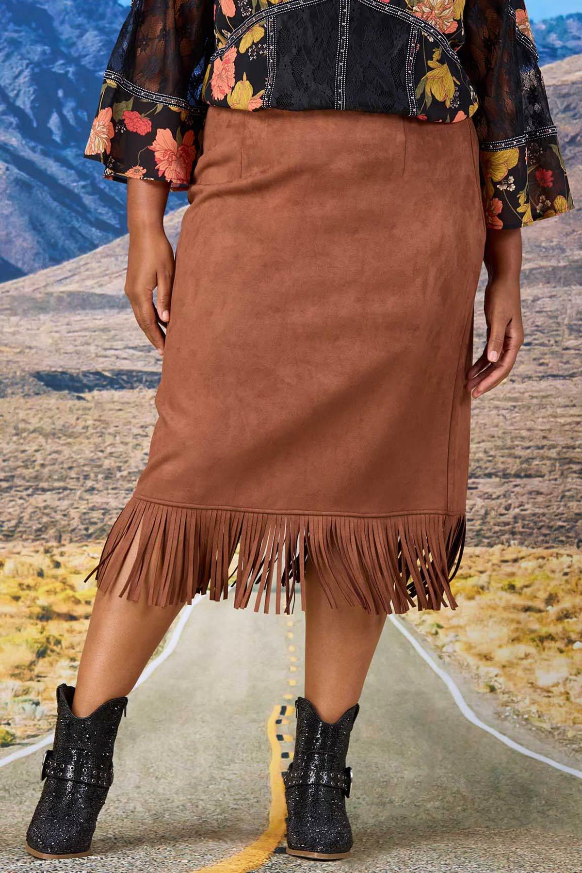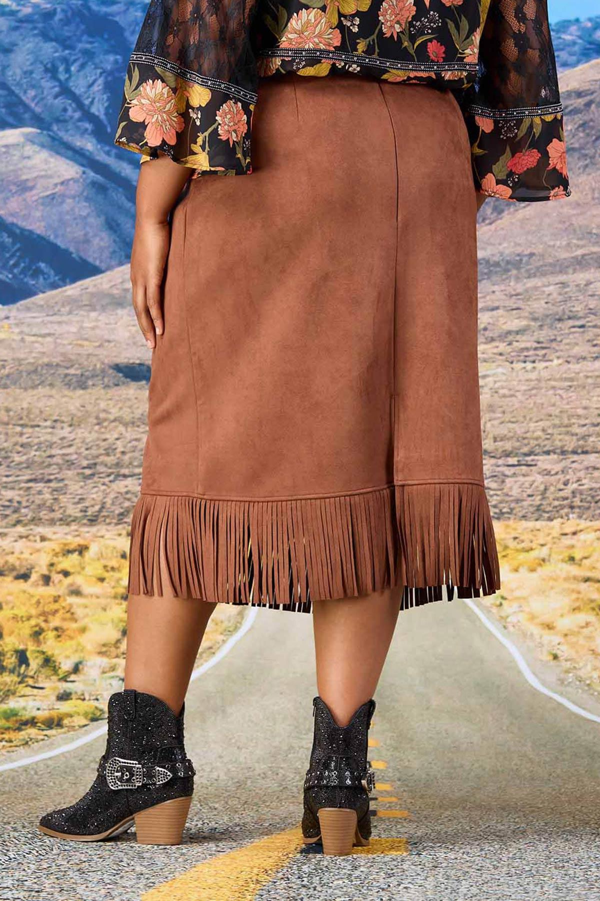 Show off your fun, confident side with this faux suede style, featuring a pull-on waist, so-soft suede and rich, brown hue for a made-you-look finish that’s ready for fun festivals and fall weather.