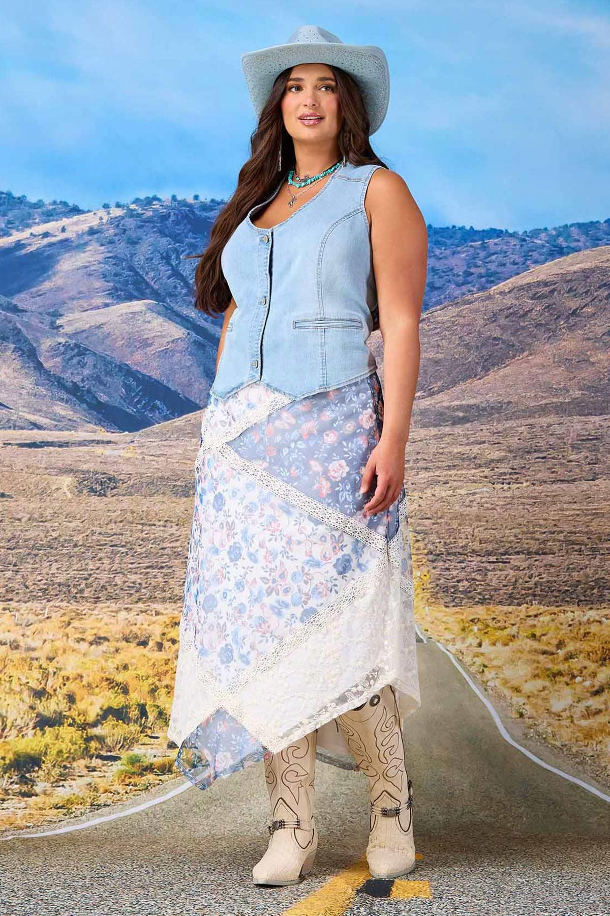 Plus Size Festival Floral Mesh Skirt