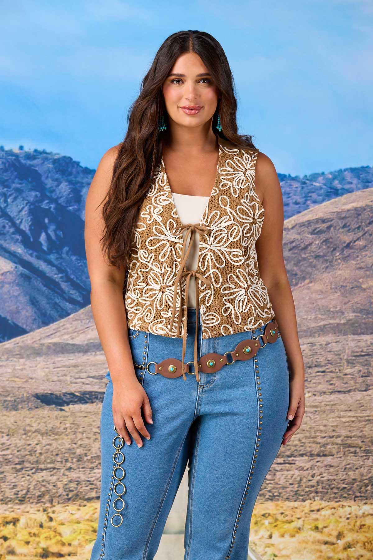 Standout style that keeps getting compliments is music to our ears and this festival-ready look is the layer you’ll love to have around. A textured floral design, contrasting knit back and double-tie front are topped by a noteworthy-neutral finish and flattering fit. Top over a cami or tank and pair with one of our most-wanted denim looks for style that’s sure to get noticed.