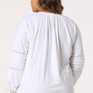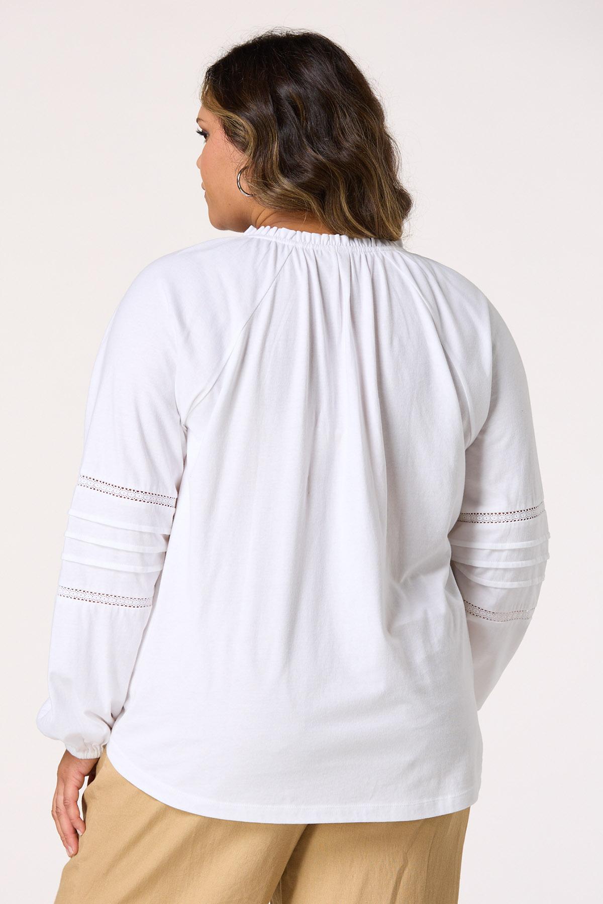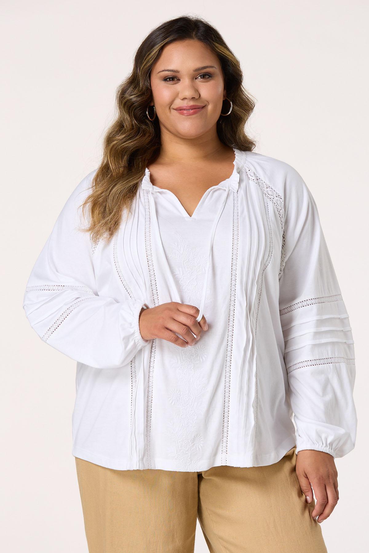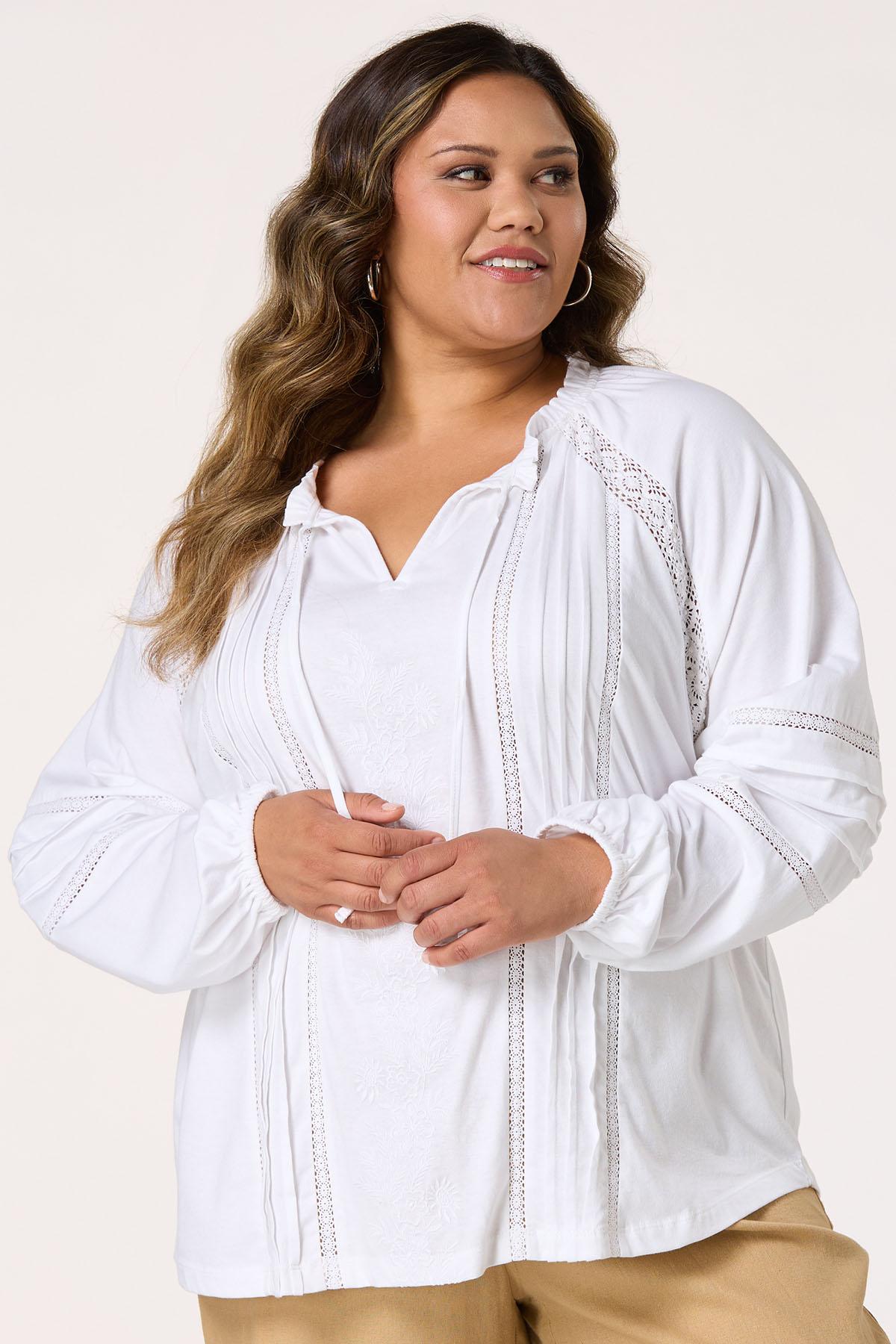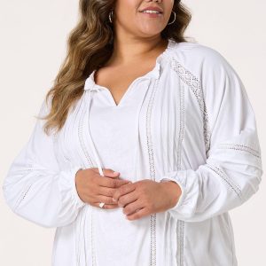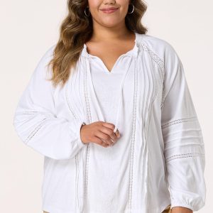 Plus Size Floral Lace Embroidered Tie Neck Top