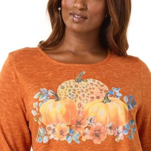 With autumn afternoons just around the corner, you’ll blend right in with this beloved hacci-knit style. Featuring a scoop neckline, relaxed fit, and a charming pumpkin and watercolor-floral graphic, it’s so soft and cozy – perfect for every fall moment you show up for.