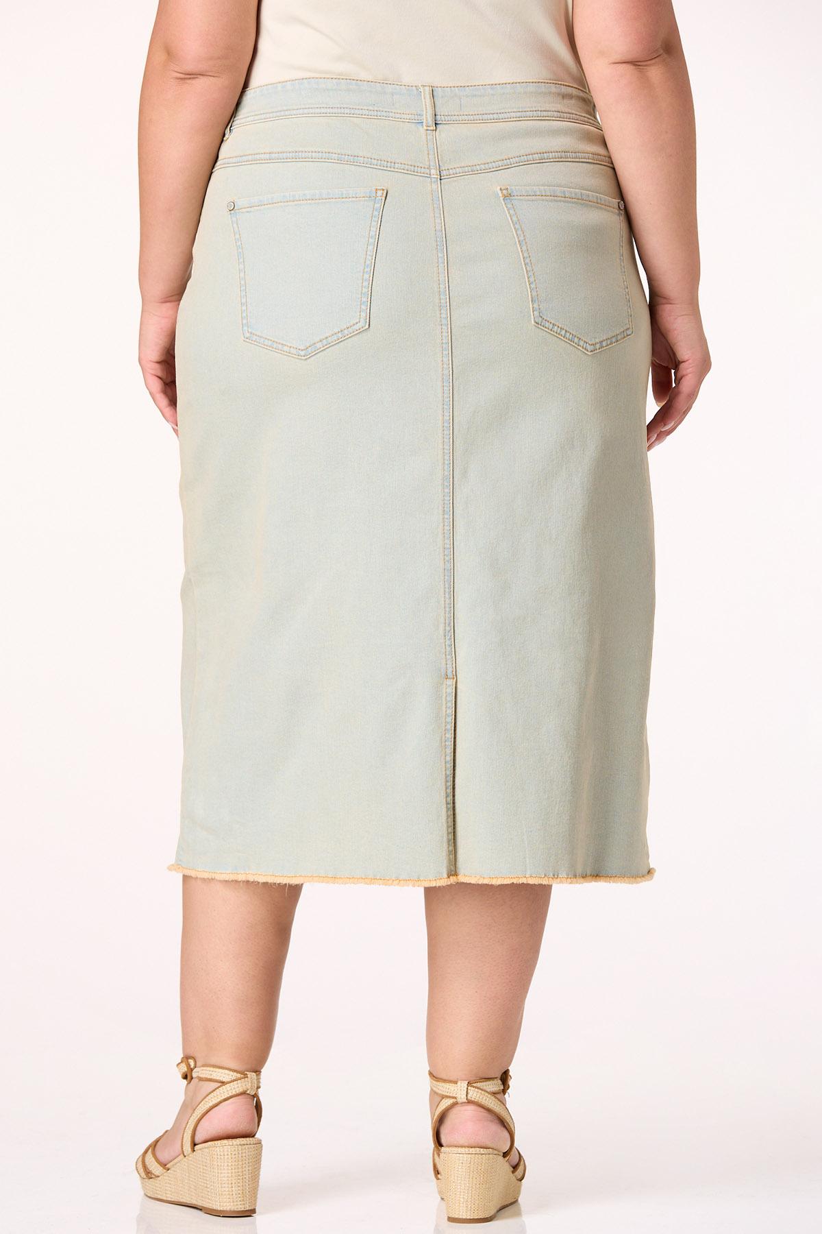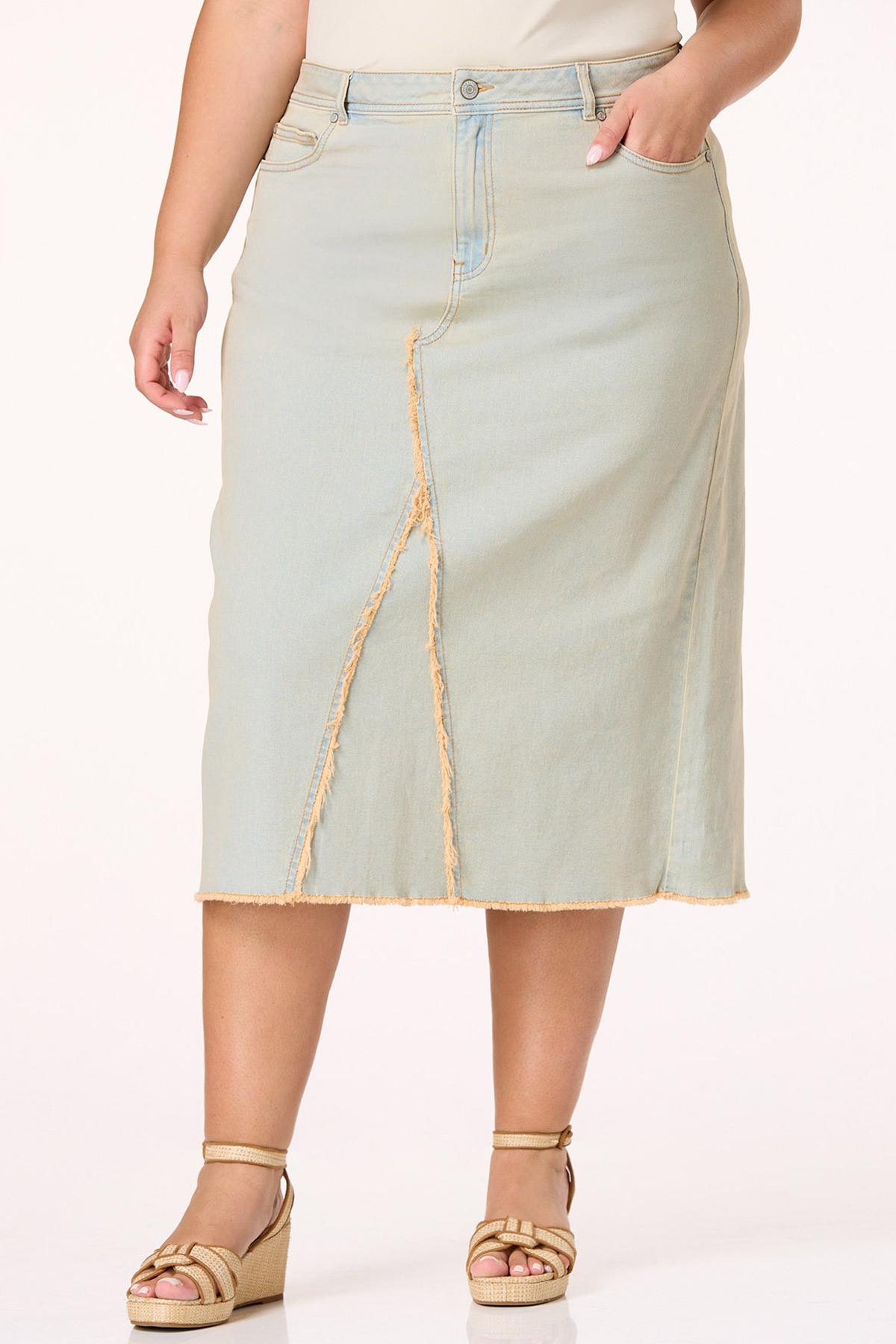 Just a girl and her favorite denim skirt is about to be you with the vintage feel of this must-have midi. Perfect with a tee, tank or even those favorite fall sweaters, this skirt features a faded-wash blue, frayed trim and the most comfortable fit for a feel-good, look-good finish.
